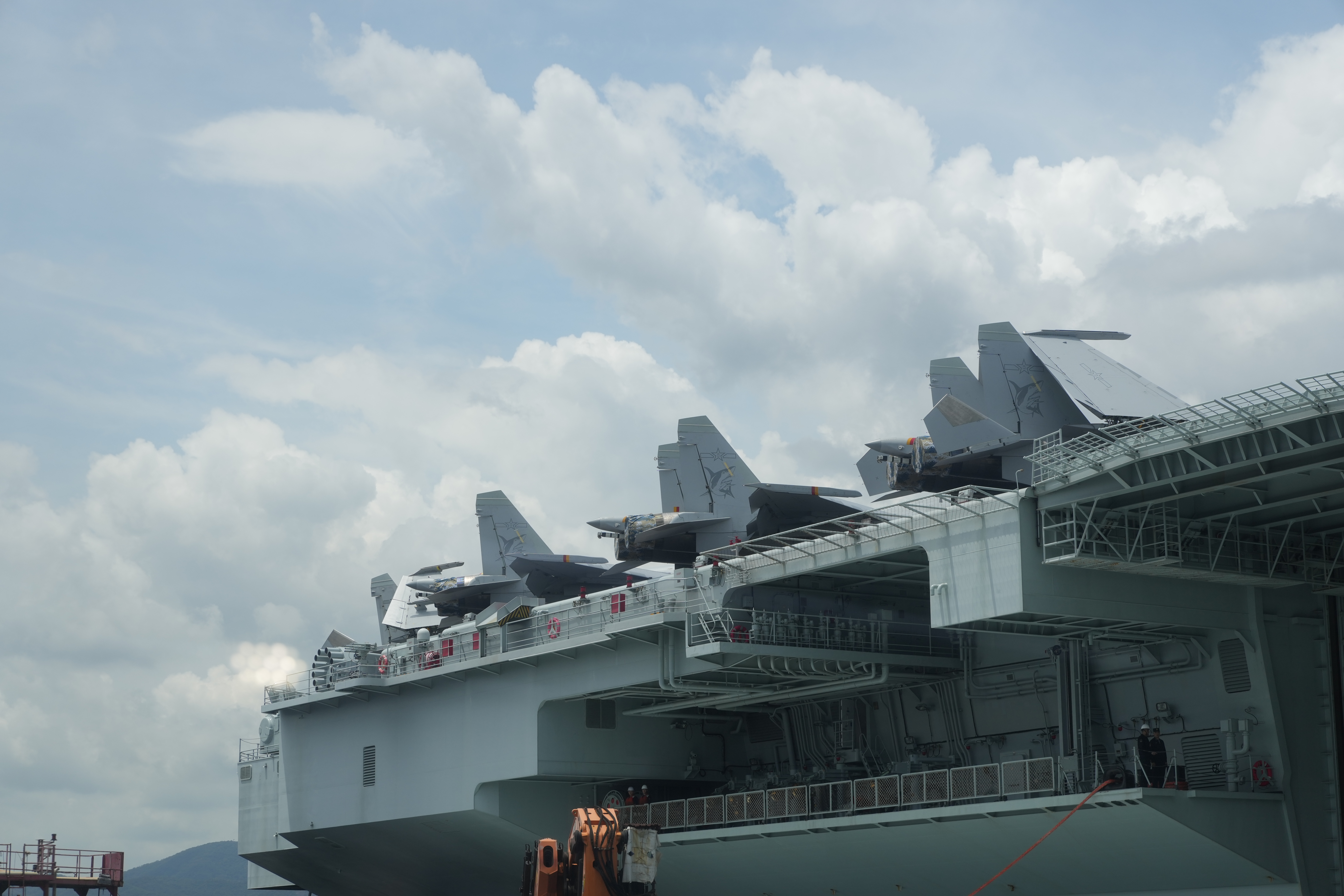 今日清晨,陽光照耀下的海面閃爍粼粼波光,山東艦上的軍官戰士早已就位,艦載戰機、直升機也規整好隊形,等待香港小客人們的到來。