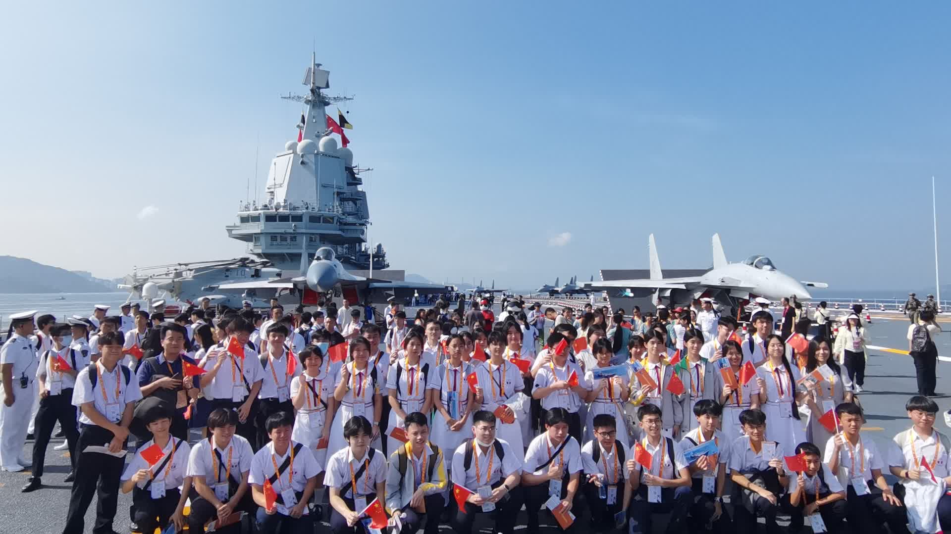 山東艦二級上士高妍形容,官兵跟隨山東艦從深藍大洋一路走來,直至來到美麗的香江,這一路不僅見證了國防軍事力量的不斷壯大,也親身感受到了祖國的繁榮富強。此次能藉着這樣重要的時刻來到香港,感到非常榮幸。站在艦上,聽着香港市民的熱情歡呼,很想對來參觀的師生說一句話:「同心、同行,一起向未來!」