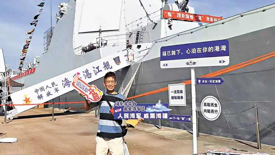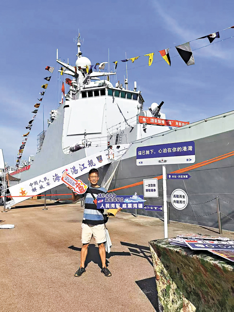 朱先生昨日登上海軍艦艇編隊中的湛江艦和運城艦參觀,近距離感受到國家強大的國防力量。他笑說:「無法形容此刻激動和開心的心情,能有登艦參觀的機會實屬榮幸!」