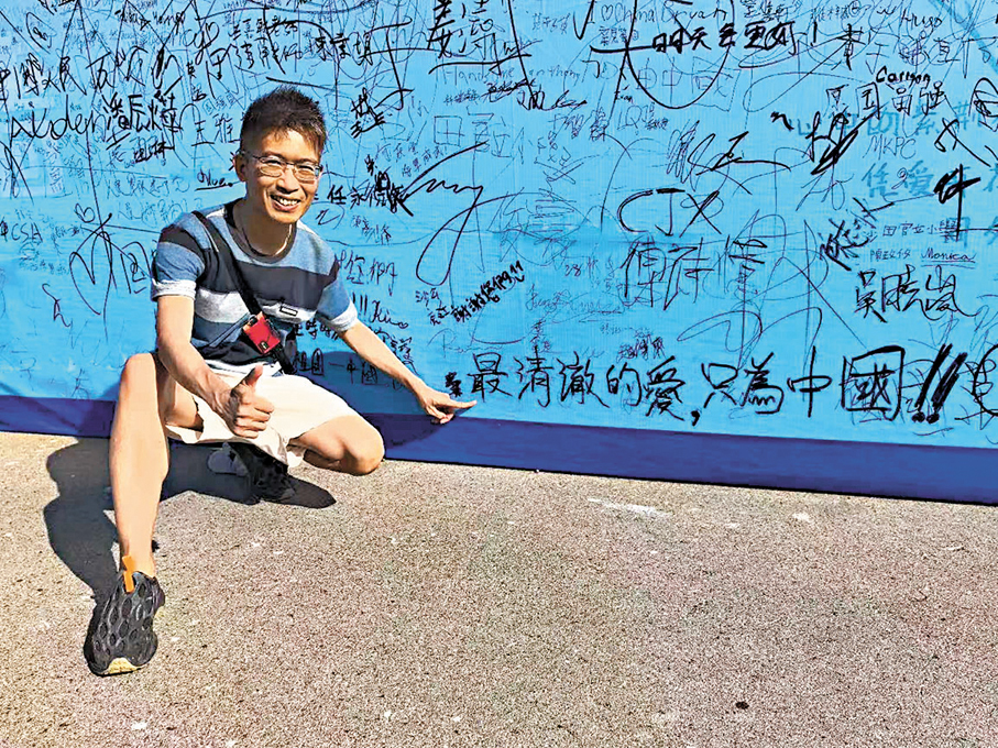 (香港文匯報 記者 蔡學怡)「當初選擇在山上揮舞紅旗迎接山東艦航母,想法真的很純粹,只想讓航母編隊知道香港同胞在期盼他們、歡迎他們。」朱先生和他的朋友為了見證中國首艘自主研發的航空母艦山東艦編隊於3日清晨入港的歷史性時刻,天未光便登上了玉桂山,並帶上早已準備好的旗杆和紅旗。他昨日在接受香港文匯報獨家訪問時表示,看到航母編隊慢慢駛入香港,他和朋友都用力揮舞五星紅旗,努力想將內心這份對國家、對中國人民解放軍洶湧的敬意、愛意和歡迎之情,都融進飄揚的紅旗裏。