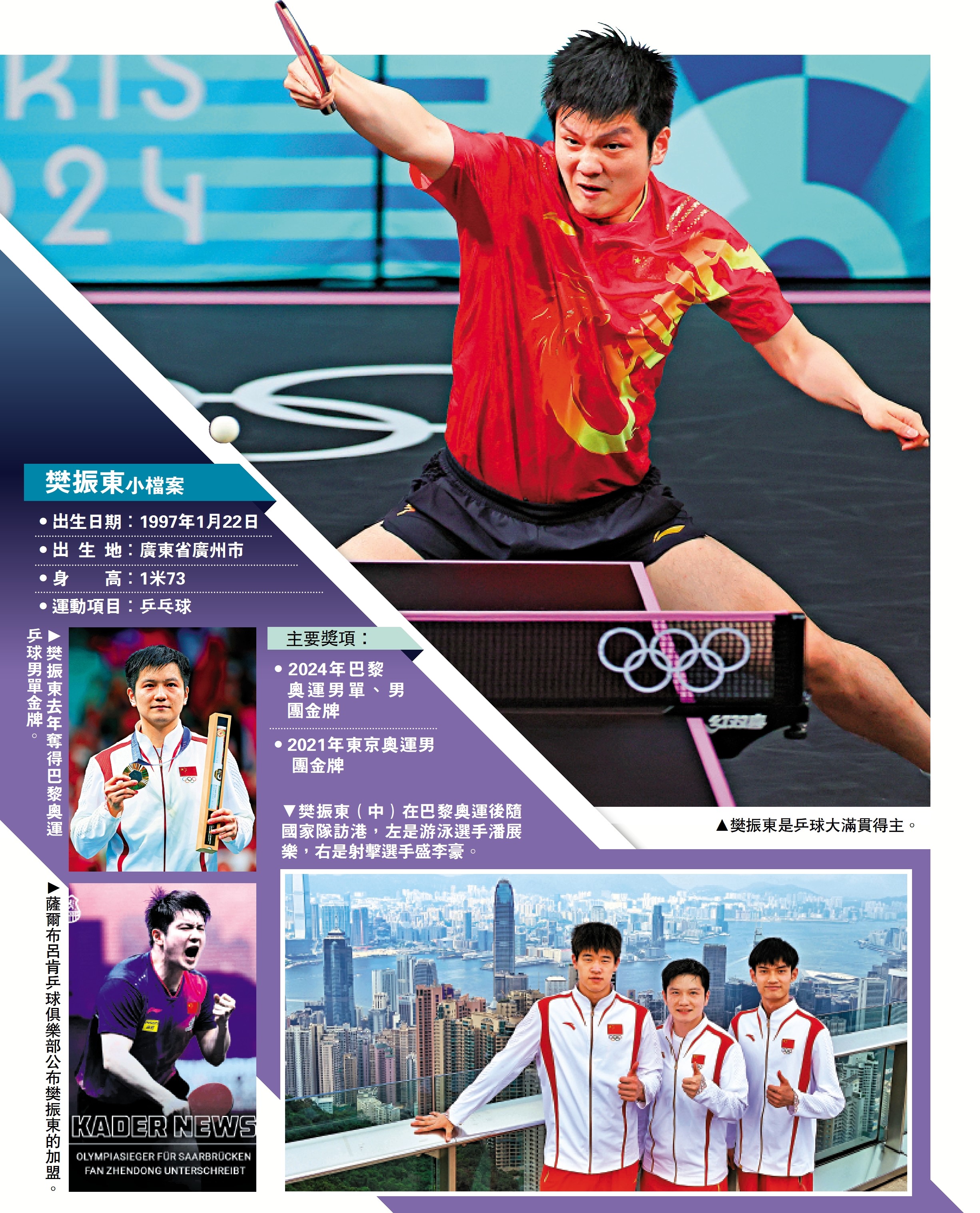 (大公報 特約記者 史玄之)6月1日,德國薩爾布呂肯乒乓球俱樂部發布了一條重磅簽約消息,中國奧運會冠軍、大滿貫得主樊振東將在新賽季身披該俱樂部隊服,為球隊征戰德甲聯賽和歐洲冠軍聯賽。國乒選手赴海外聯賽打球並非新鮮事,王皓、陳玘等奧運冠軍都曾在職業生涯的末期加盟歐洲聯賽俱樂部,但仍處於職業生涯巔峰的樊振東選擇赴海外俱樂部聯賽打球,出乎不少人意料,這意味着他在權衡各方利弊後,選擇在洛杉磯奧運周期體驗一段全新的留洋生活。