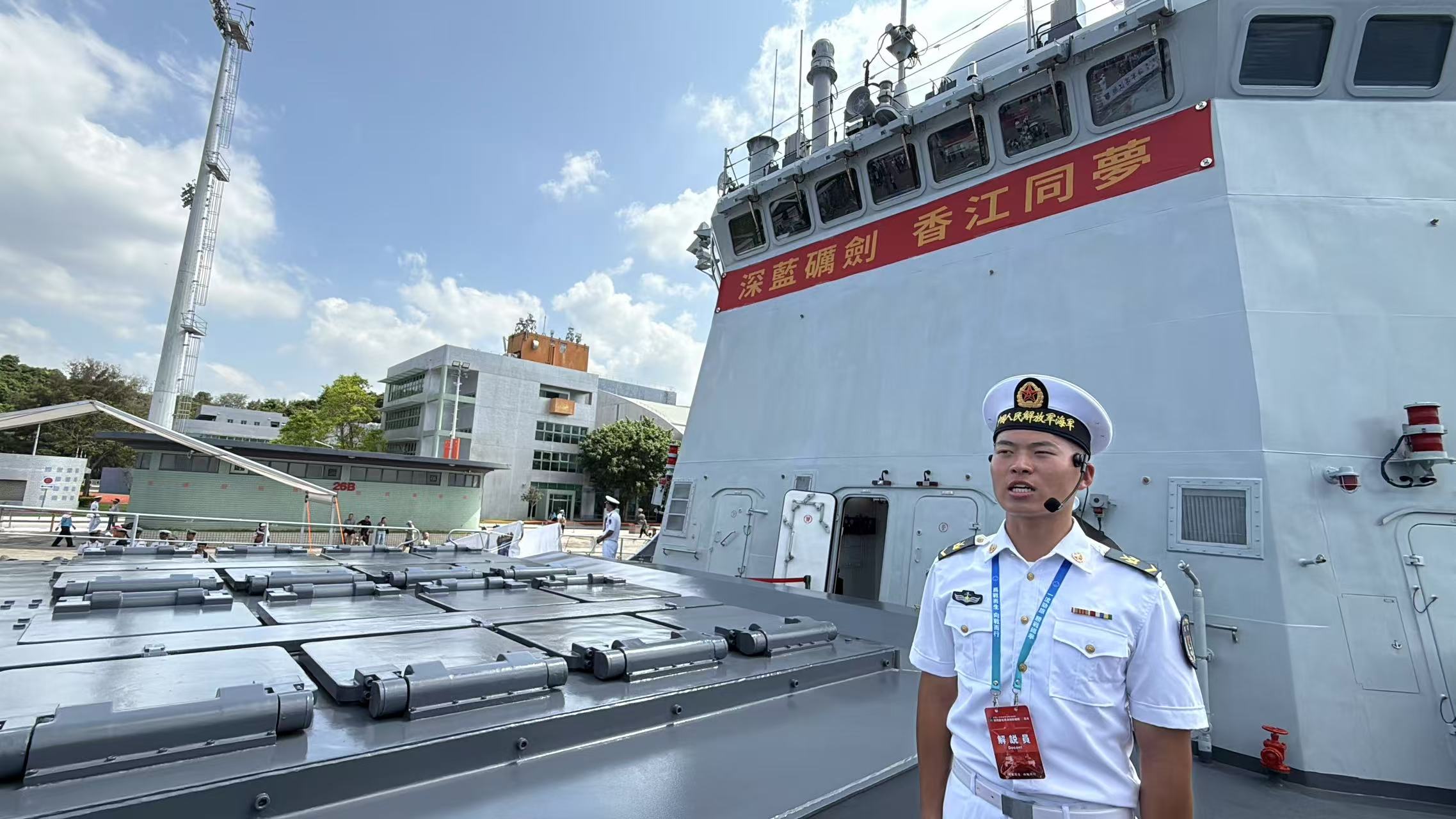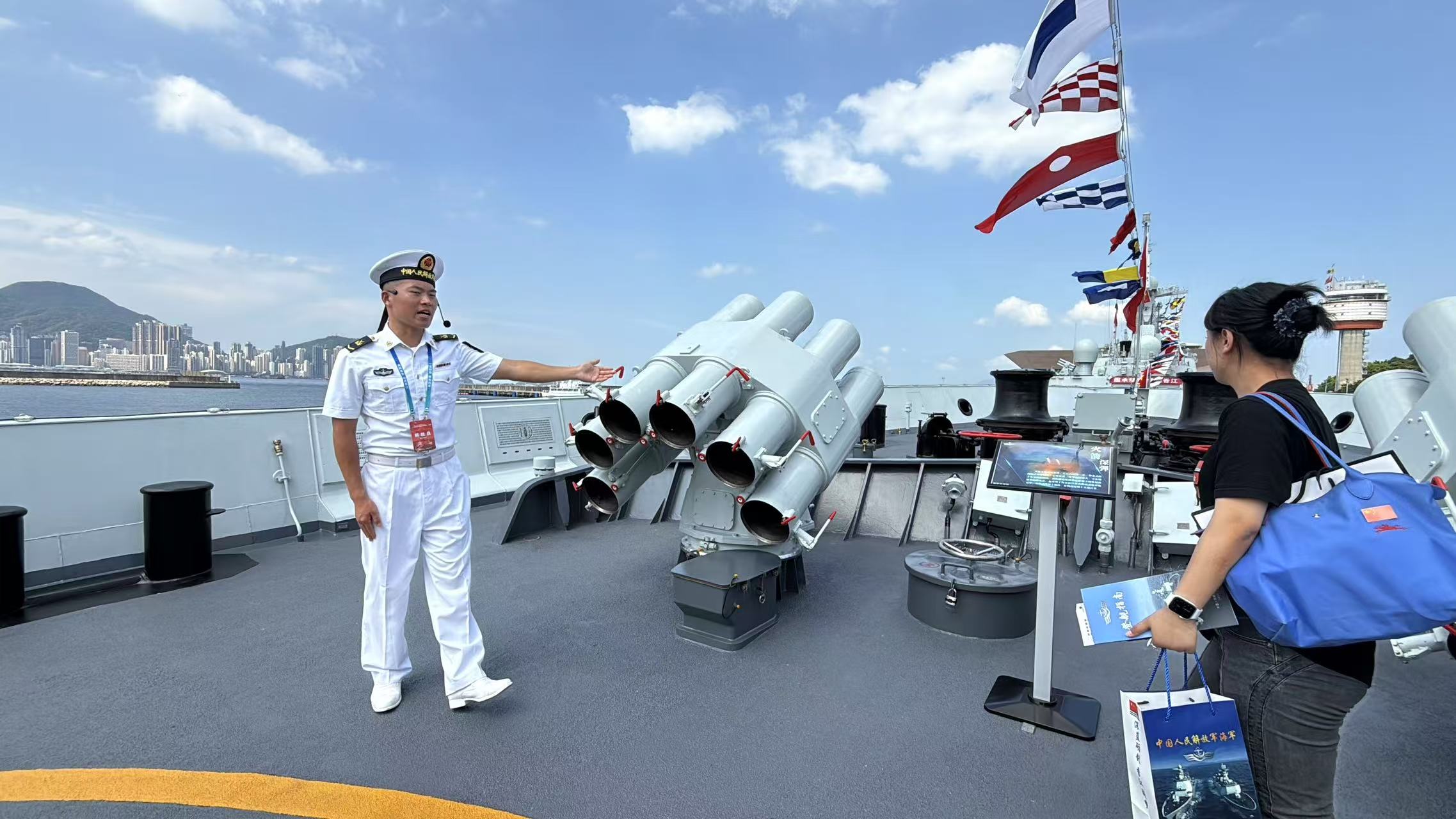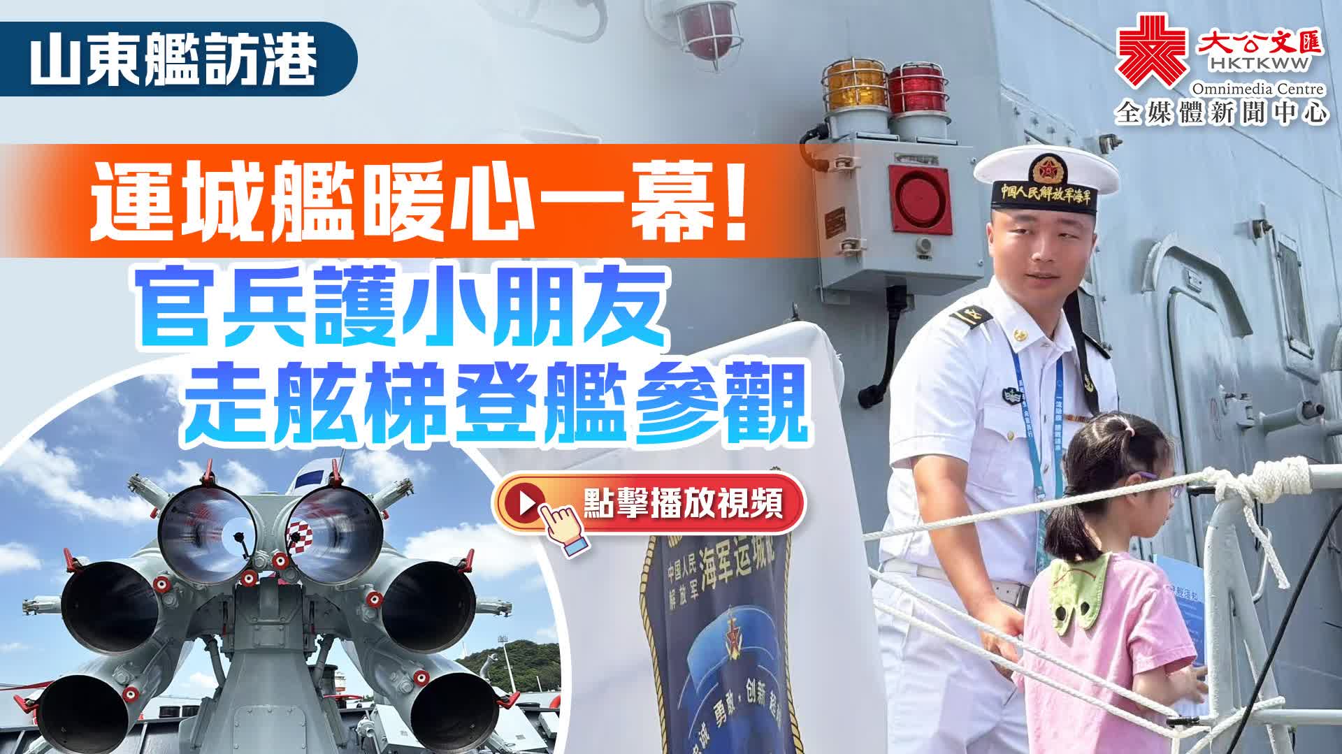 大公文匯全媒體報道,山東艦航母編隊7月3日上午抵達香港,開啟一連5天的訪港活動。今日(5日)起,山東艦停泊在維港西錨地,湛江艦、運城艦停泊在昂船洲軍營碼頭,面向公眾開放參觀。記者今早抵達昂船洲軍營後順利登上運城艦進行參觀,記錄下軍民暖心互動瞬間。