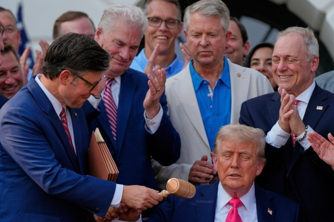 據環球網綜合報道,美國總統特朗普4日下午簽署「大而美」稅收和支出法案,標誌着這一備受爭議的法案正式成為法律。據澳大利亞新聞網報道,簽署法案現場出現讓不少美國人「炸鍋」一幕:美國國會眾議院議長邁克·約翰遜將標誌着法案在國會通過的議事槌交給了特朗普,在批評者看來,這一幕象徵着美國國會——與美國聯邦政府平起平坐的一個機構——在美國總統面前「俯首稱臣」。