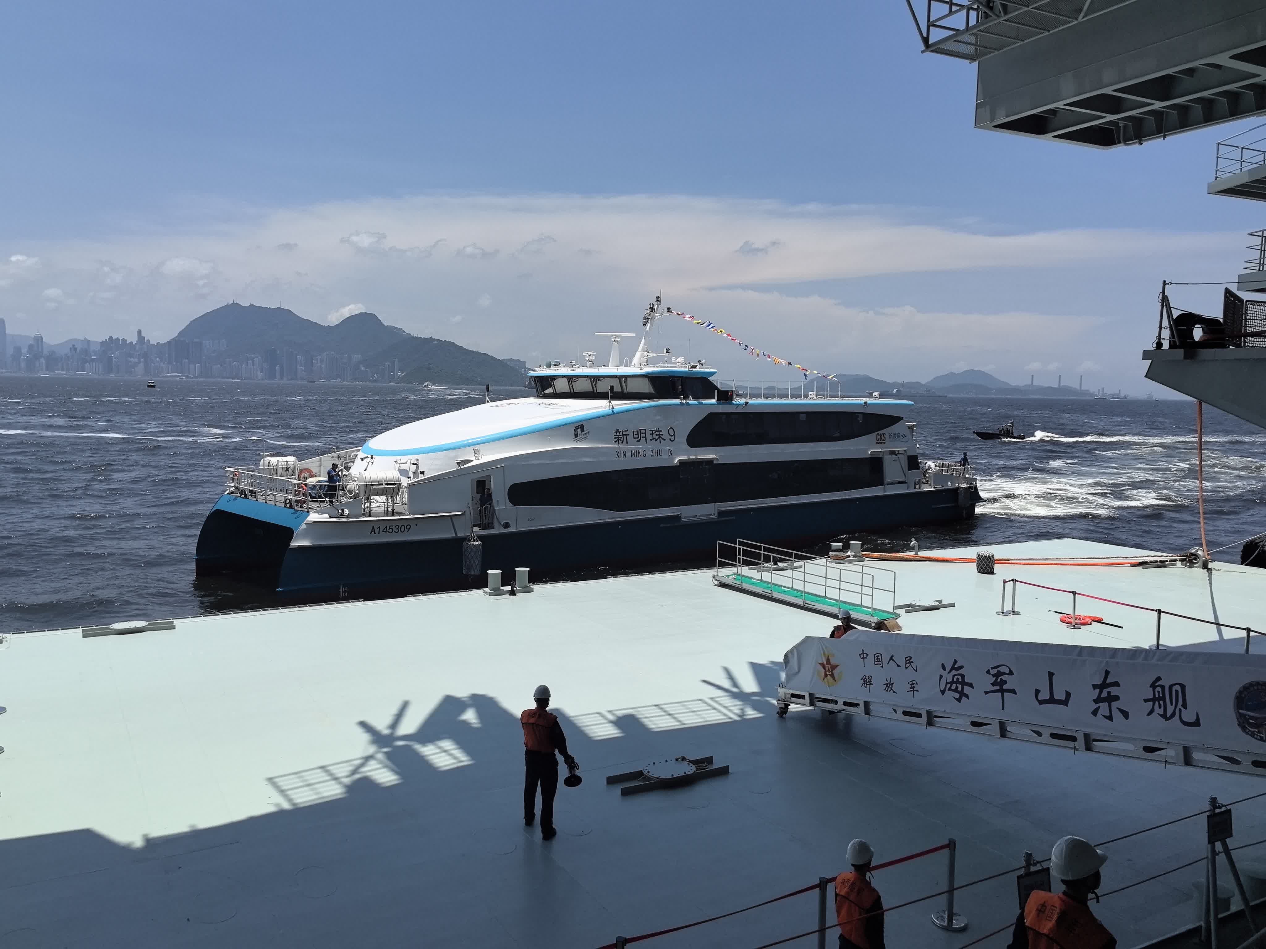 大公文匯網報道,7月3日,山東艦航母編隊抵達香港,開啟為期5天的訪問活動。珠江船務下屬珠江客運有限公司作為這次山東艦航母編隊訪港活動期間相關服務的總代理,項目包括:登艦參觀嘉賓及部分香港市民、「山東艦」官兵的海上交通保障、引水服務、拖船服務、油污水處理服務、生活污水處理等多項服務。