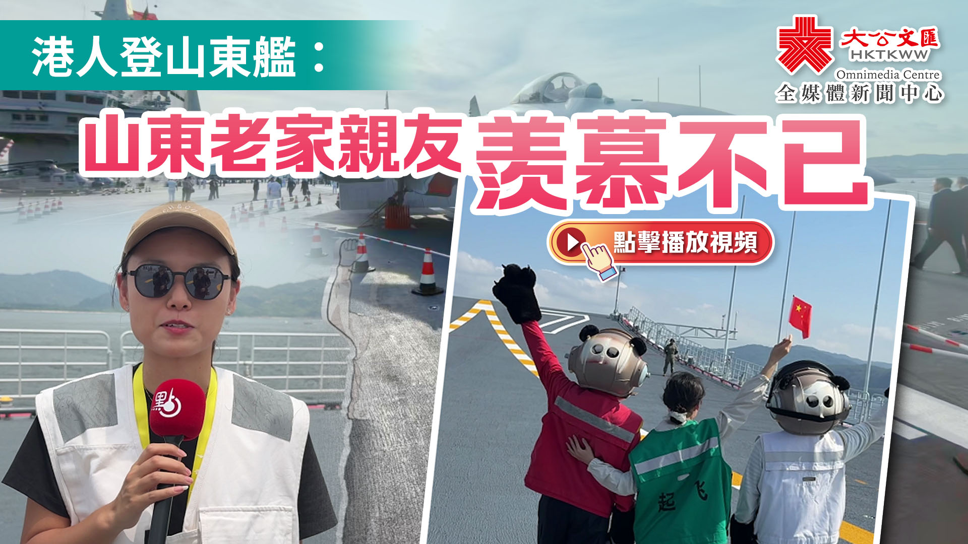 談及登艦感受,卜小姐笑言,山東的朋友們尚未有機會登艦,紛紛對她表示羨慕。「我登上山東艦了,他們還沒機會,真的特別開心!」她希望山東艦未來能多來香港,並祝願祖國繁榮昌盛、香港越來越好,「大家一家親」。