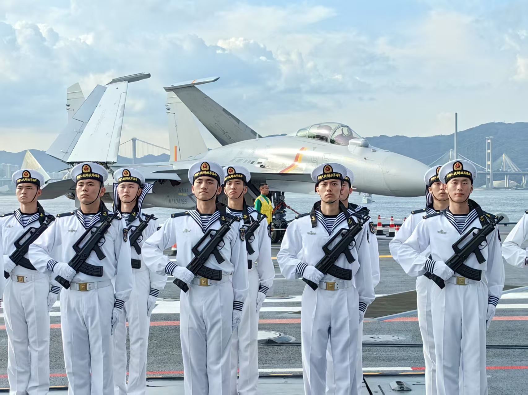 他還注意到一個細節:無論是編隊進港時海軍官兵整齊列隊拼出的「國安家好」四個大字,還是登上「山東艦」後在機庫看到的巨幅背景板上同樣的大字,他感慨道:「這不僅是視覺符號,更象徵着國家強盛是人民幸福的基石,我們的生活正在一天天變好。」
