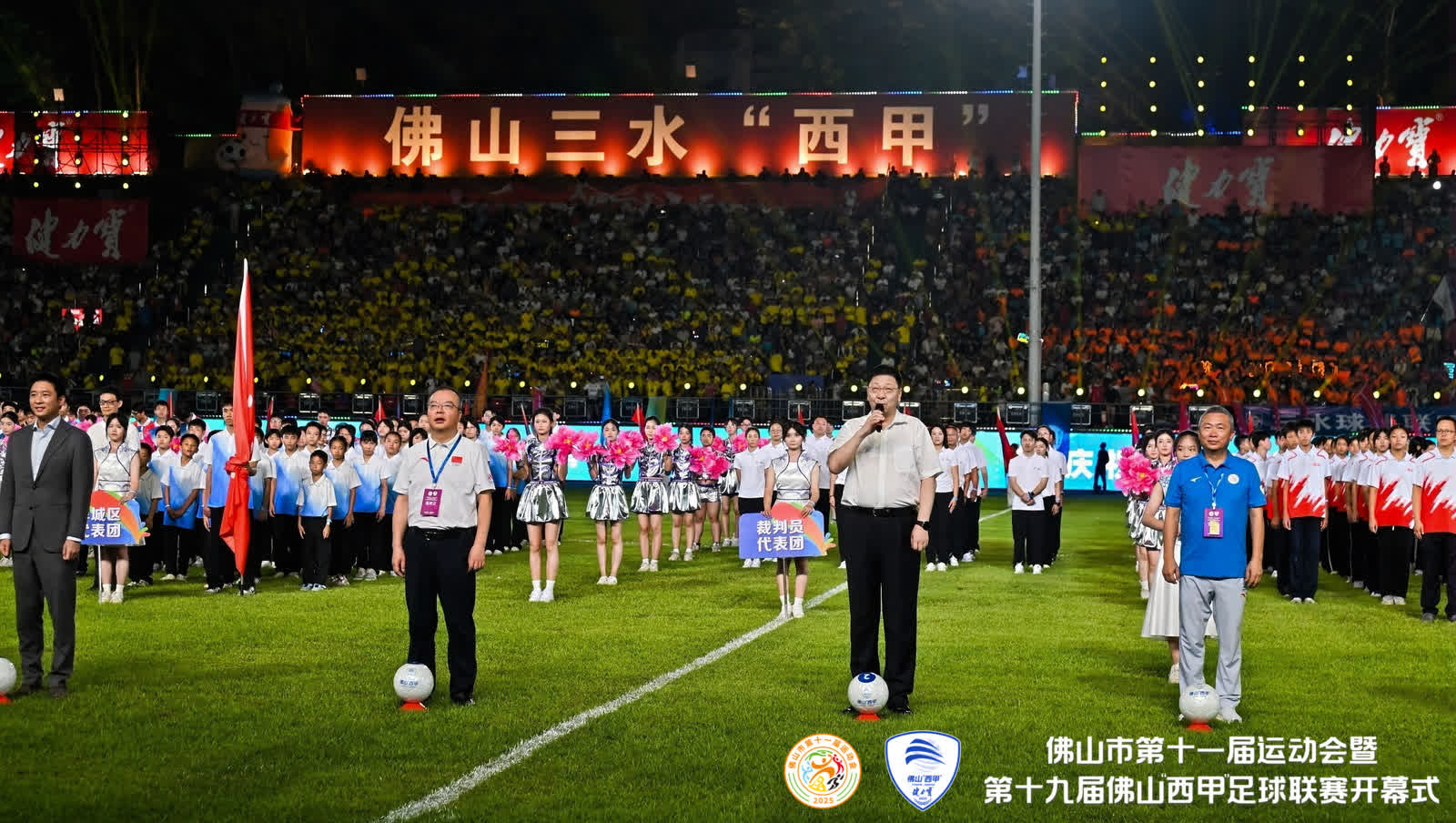 7月4日晚,佛山市第十一屆運動會暨健力寶杯第十九屆佛山「西甲」足球聯賽,在佛山市三水區雲秀山體育場正式開幕。本屆佛山「西甲」賽事規模空前,歷時一個多月,全國40支勁旅角逐冠軍寶座,將為廣大球迷送上近百場精彩賽事。