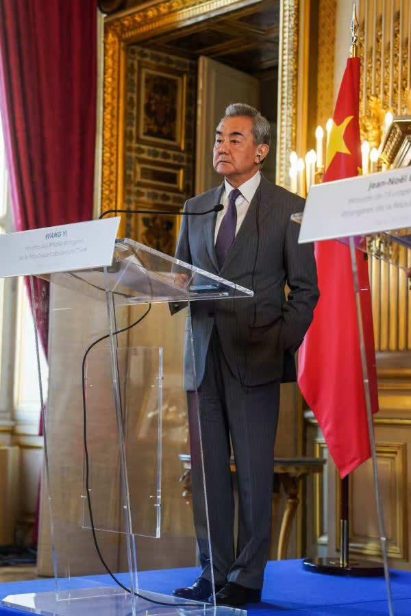據外交部網站消息,當地時間2025年7月4日,中共中央政治局委員、外交部長王毅在巴黎同法國外長巴羅共同會見記者並現場回答提問。