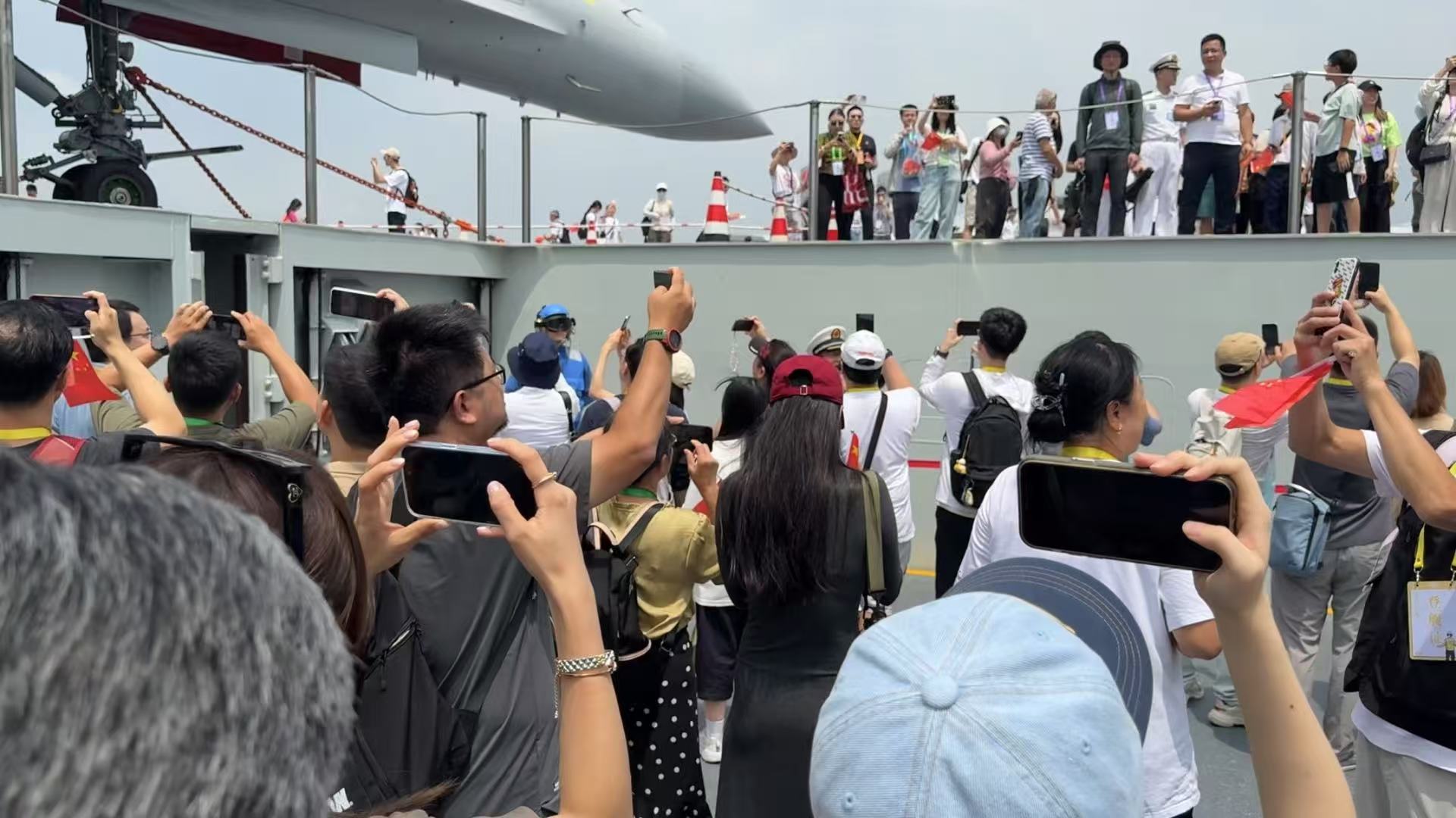 這天在山東艦上令我印象最深刻的就是訪問市民的環節,每一位和我分享感受的市民第一句話就是「很開心、很激動」。而最令我感到驚喜的是,在隨機的採訪中,竟偶遇到了一位家鄉是山東青島的香港市民!她用粵語告訴記者,自己在香港已經生活了十年多,這次真的很高興能來到山東艦,她在山東的親友都十分羨慕她。雖然有點「凡爾賽」,但她的開心特別有感染力,連我也忍不住替她感到高興。