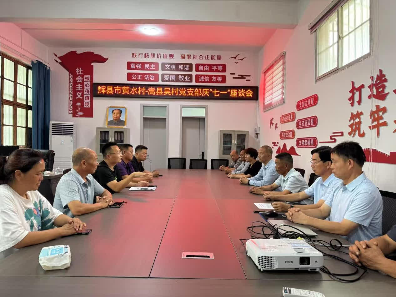 6月30日,吳村黨員一行來到輝縣市,與河南師範大學派駐黃水鄉黃水村工作隊進行座談交流。第一書記董文可介紹發展絲瓜種植的產業規劃和大學生暑期社會實踐活動組織情況,雙方圍繞幫扶工作中的經驗與挑戰,就產業幫扶、人才培養、文化建設等方面展開深入探討,互相分享幫扶工作的難點痛點和有效做法。