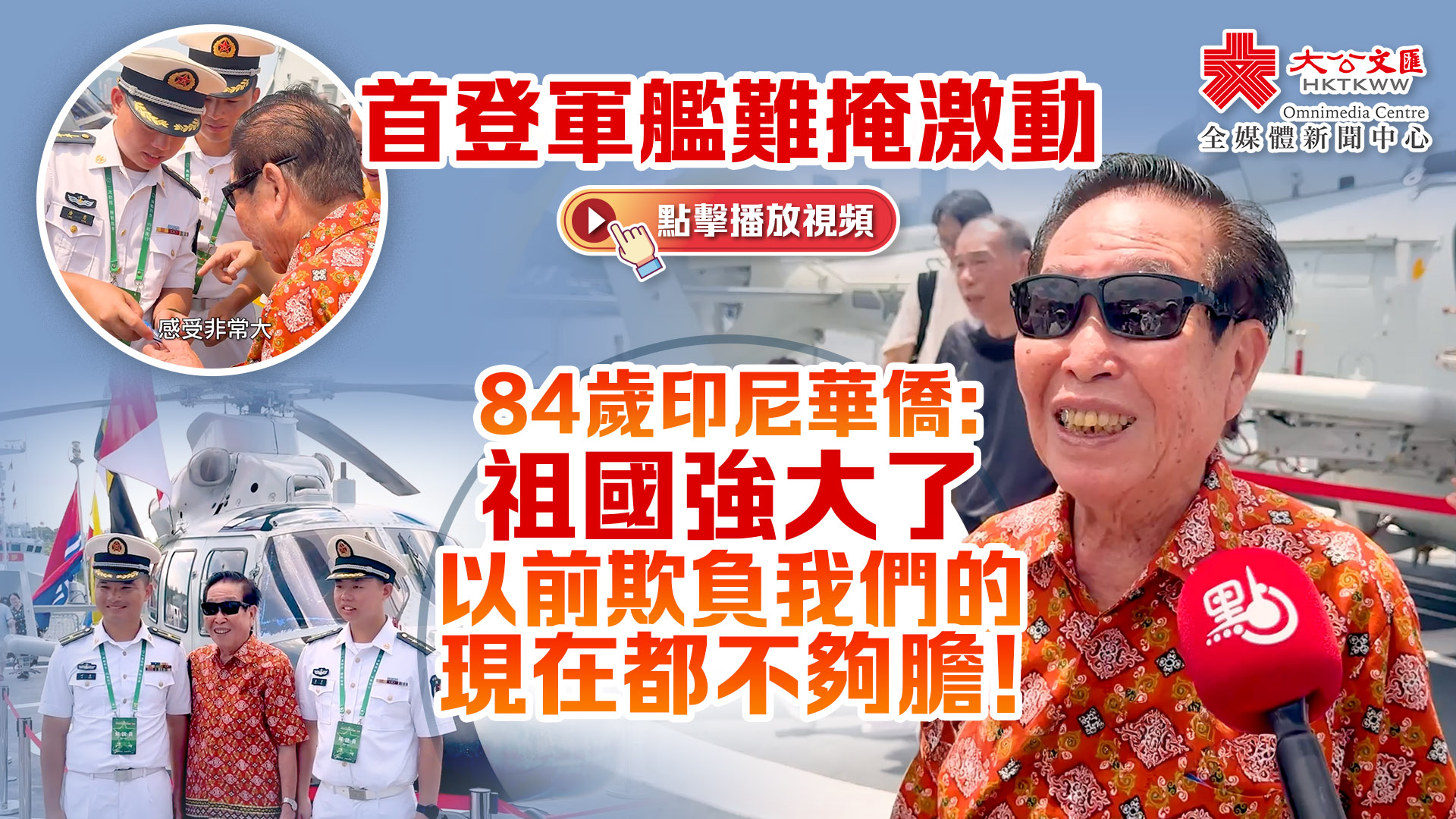 今年是中國人民抗日戰爭暨世界反法西斯戰爭勝利80周年。鄭先生回顧歷史表示:「我們祖國強大了,以前(我們)被人欺負,特別是『日本鬼』,現在他們都不夠膽!所以看到我們的戰艦、軍艦,心裏非常開心。希望以後多過來,讓我們市民都多見識一下。」