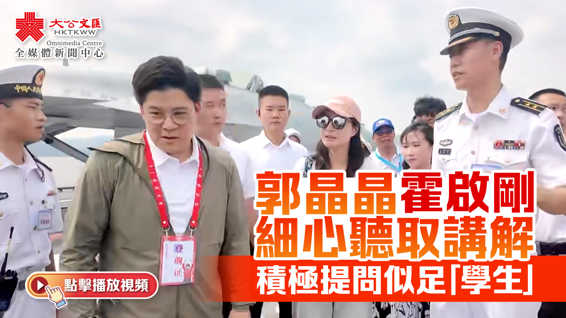(大公文匯全媒體 記者 程程)山東艦航母編隊一連5日訪問香港,今日(6日)繼續開放給香港市民參觀。港協暨奧委會副會長、立法會議員霍啟剛與妻子「跳水皇后」郭晶晶來到山東艦參觀,兩人細心聽取講解和介紹,並不時向提出問題。在激動時,兩人更伸出手指向軍艦,還不斷確認自己是否有理解錯誤的地方,似足「學生」。