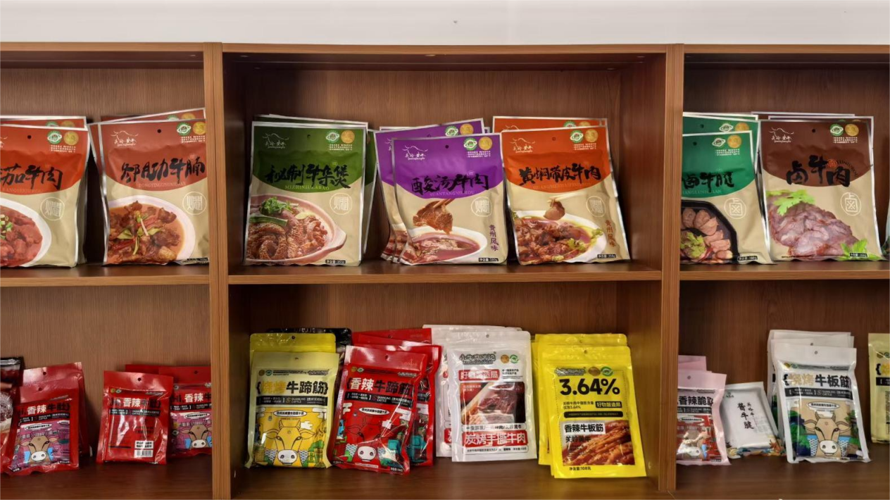 這個深山瑰寶的爆發源於三次關鍵躍升。2021年國際金獎認證品質,2023年作為全國「村BA」決賽冠軍獎品引爆網絡,2024年關嶺自治縣躋身國家級現代農業產業園。在關嶺牛食品公司的研發中心,工程師正調試新投產的熏烤牛肉生產線。該公司推出的炭烤手撕牛肉等產品備受到訪者的青睞,紛紛將香味十足的牛肉送到嘴裏。實驗室裏飄散的肉香,見證着從初級農產品到精深加工品的蛻變。