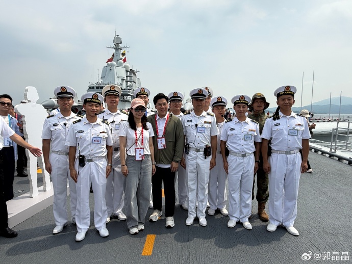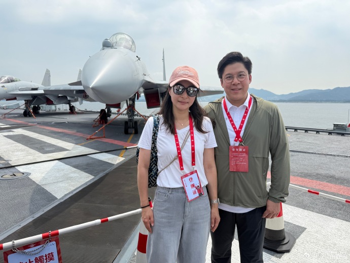 兩人均在社交平台上曬出在山東艦上的留影。郭晶晶表示:「香港回歸祖國28周年之際,山東艦航母編隊訪港引起了不小的轟動。今天我終於也登上了咱們的航母編隊,踏上山東艦的甲板,近距離看到艦上的裝備,感受那份厚重的力量感。跟海軍的交流中了解到航母的意義與使命所在,也對國家與軍隊的發展成就有更直觀、真切的感受和了解。這次登上山東艦參觀體驗,讓我深深感受到國家帶給我們的堅實的安全感,現在安寧和穩定的日子,背後正是祖國強大力量的守護。」