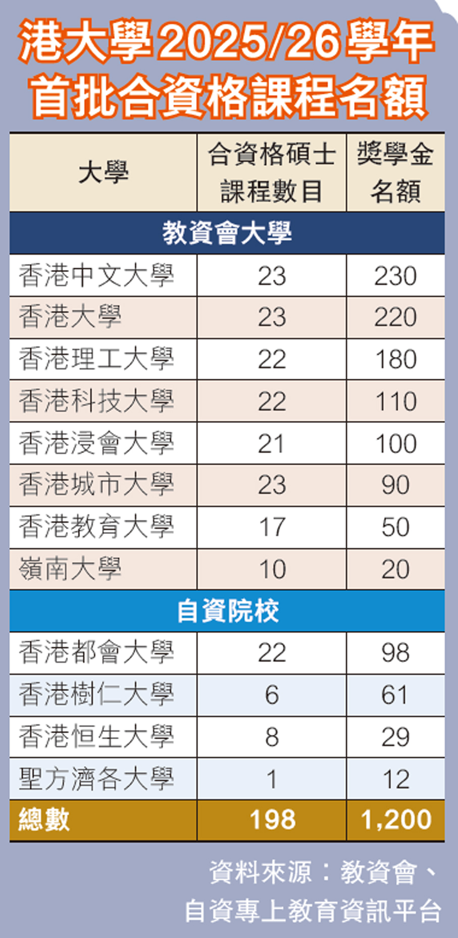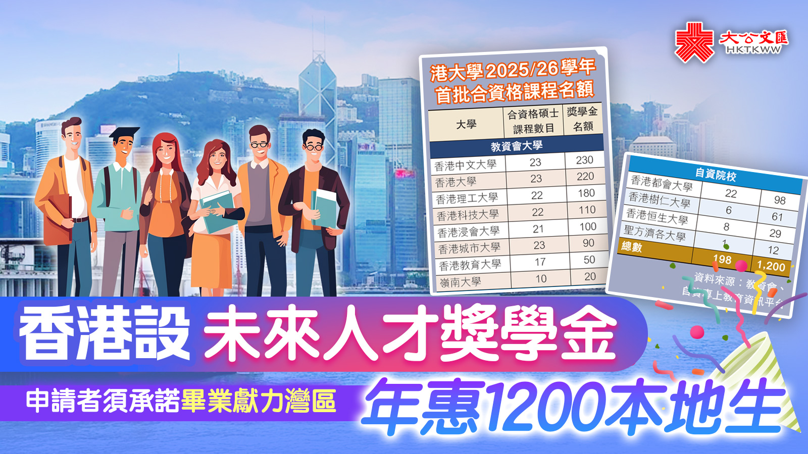 (香港文匯報記者 姜嘉軒)為吸引更多本地學生在有利香港發展的優先範疇深造,擴大不同領域的高端人才庫,2024年施政報告宣布從2025/26學年起設立「香港未來人才深造獎學金計劃」,每年為最多1,200名在八所資助大學或自資大學修讀指定研究院修課課程的本地學生提供獎學金。