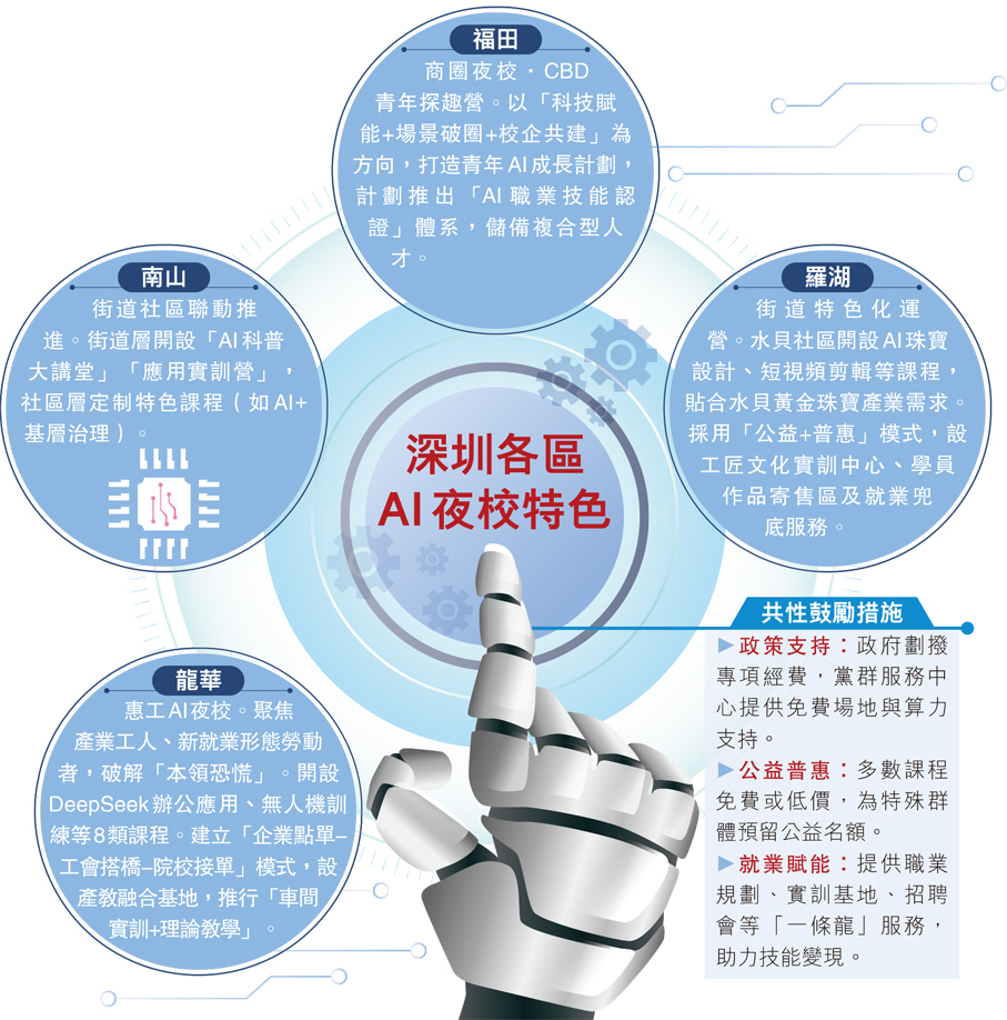 在深圳,越來越多人下班後的選擇不再是夜宵聚會,而是走進「AI夜校」充電學習。AI應用、無人機操控、直播帶貨、短視頻創作等新興AI課程悄然走紅,成為社區夜校中的新晉「頂流」,吸引快遞員、產業工人、創業者等群體走進教室「充電」,更有人從職場「AI小白」逐步邁向成為社區講師的目標。數據顯示,僅龍華區福城街道章閣社區AI夜校就已開設39期課程,培訓超3,200人次,成為職場人突破職業天花板的「開掛神器」。
