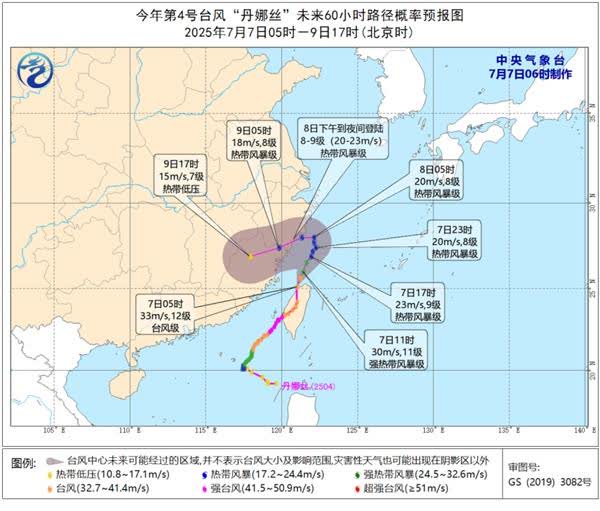 據央視新聞報道,今天(7月7日)凌晨,颱風「丹娜絲」登陸台灣嘉義縣沿海,登陸時強度為颱風級,截至7時前後,它已減弱為強熱帶風暴。預計「丹娜絲」將繼續北上,不排除登陸我國浙江、福建沿海的可能,公眾需密切關注颱風動向,做好防颱風措施。今明天,我國高溫範圍將縮減,但悶熱天氣格局難以改變,尤其是江南一帶,仍需持續做好防暑措施。
