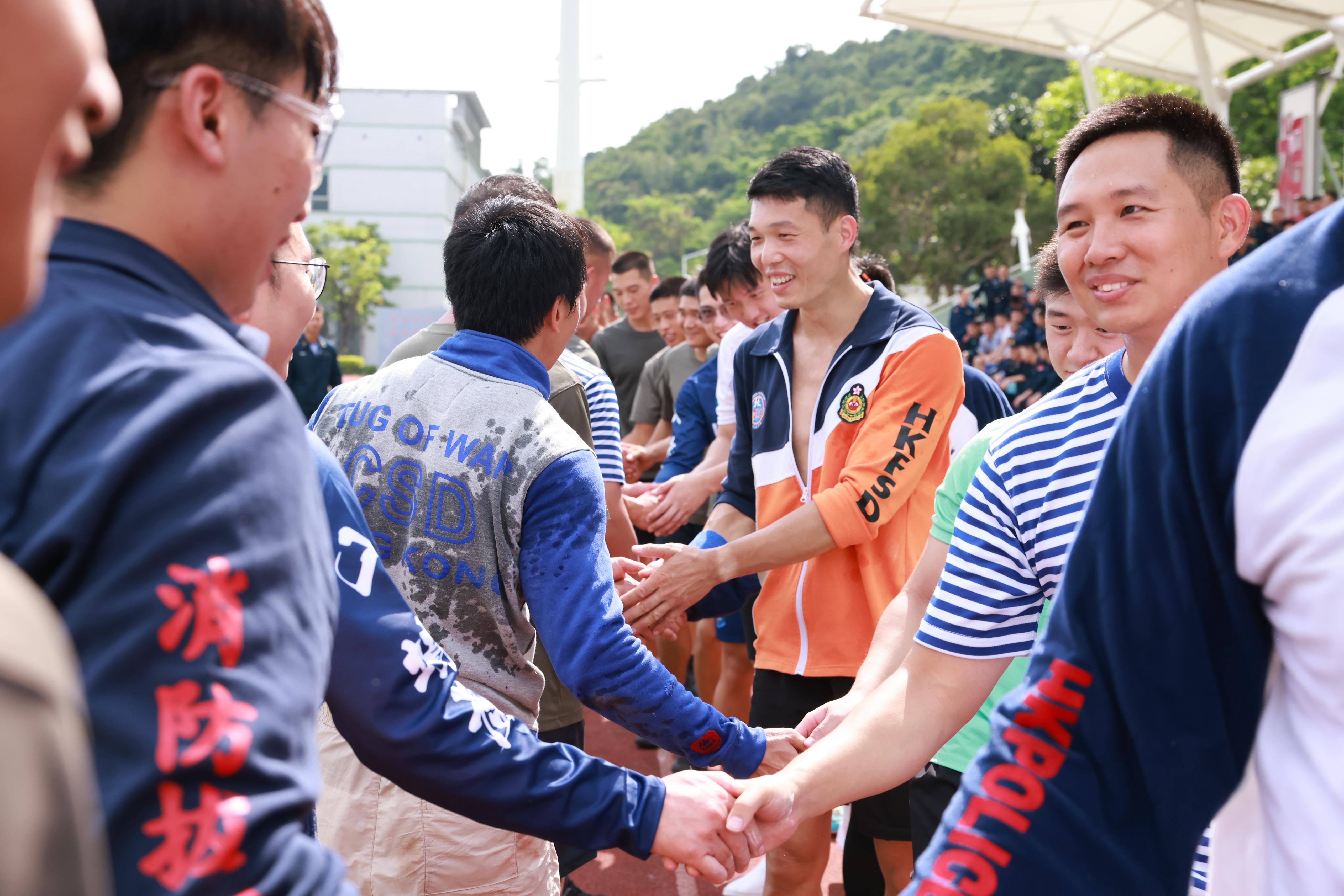 今個周末天氣炎熱,氣氛亦十分熱血,因為解放軍海軍山東艦編隊的3艘軍艦開放予公眾參觀,而保安局和各紀律部隊代表今日亦到了昂船洲軍營,跟駐港解放軍以及山東艦編隊上演一場體育文化交流活動。雙方代表一上場,便立刻展開緊張刺激的拔河比賽,每位都咬緊牙關拼命拉,氣氛超級高漲!及後再踢足球友誼賽,「你傳我射」,雙方互有攻守,在草地飛奔,各顯身手!