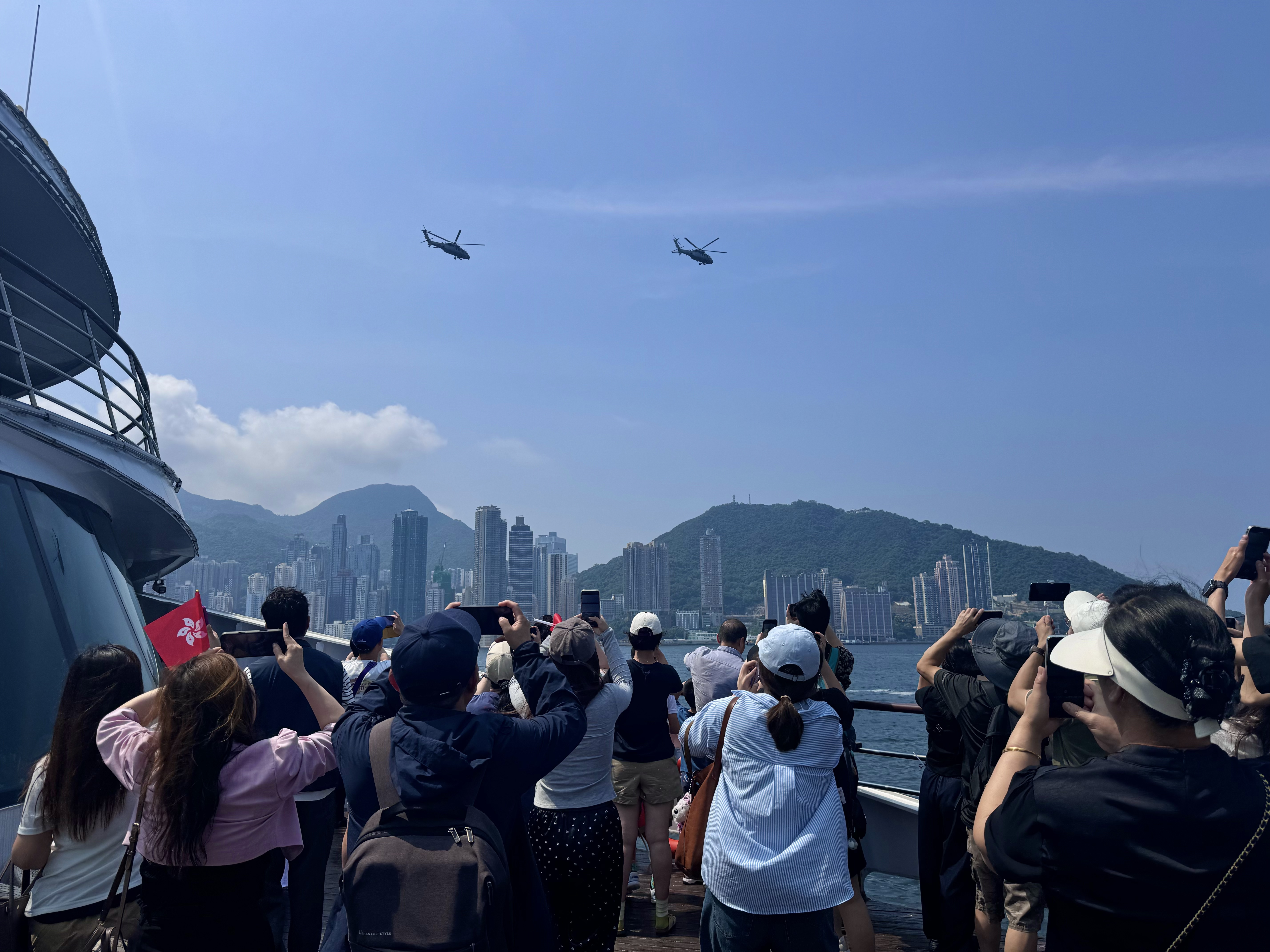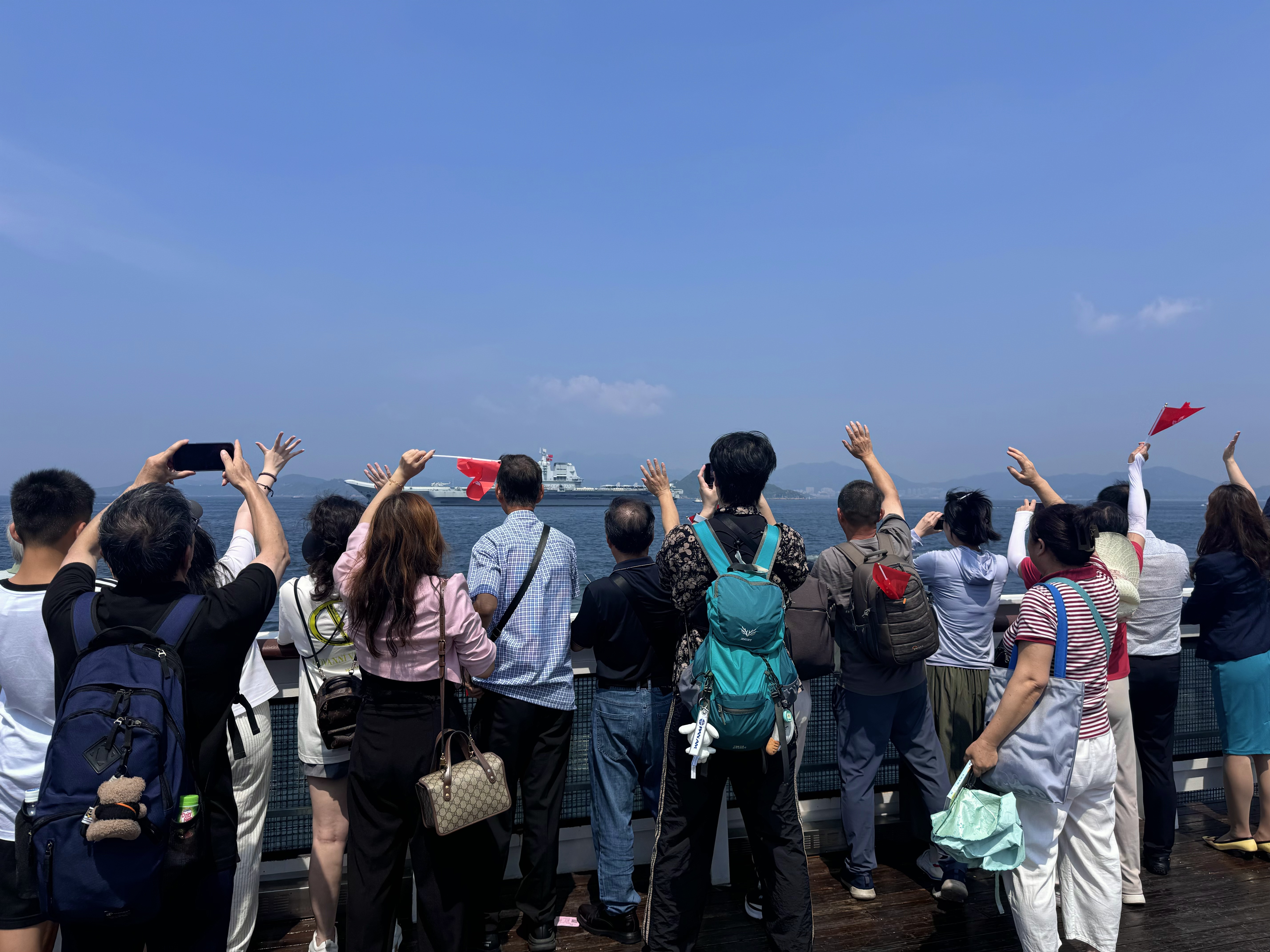 內地遊客何同學表示,是次和父母及妹妹專程來港就是為了目睹航母編隊的風采,他平時就對中國的軍事建設、戰鬥機十分感興趣,因此特別想親眼看到中國新一代戰鬥機,例如殲-15T,「也想看看導彈驅逐艦,但比較遺憾的是沒有登艦的票,不過今天坐船,還有最後機會看到和歡送山東艦,也能看到祖國的科技發展程度。」