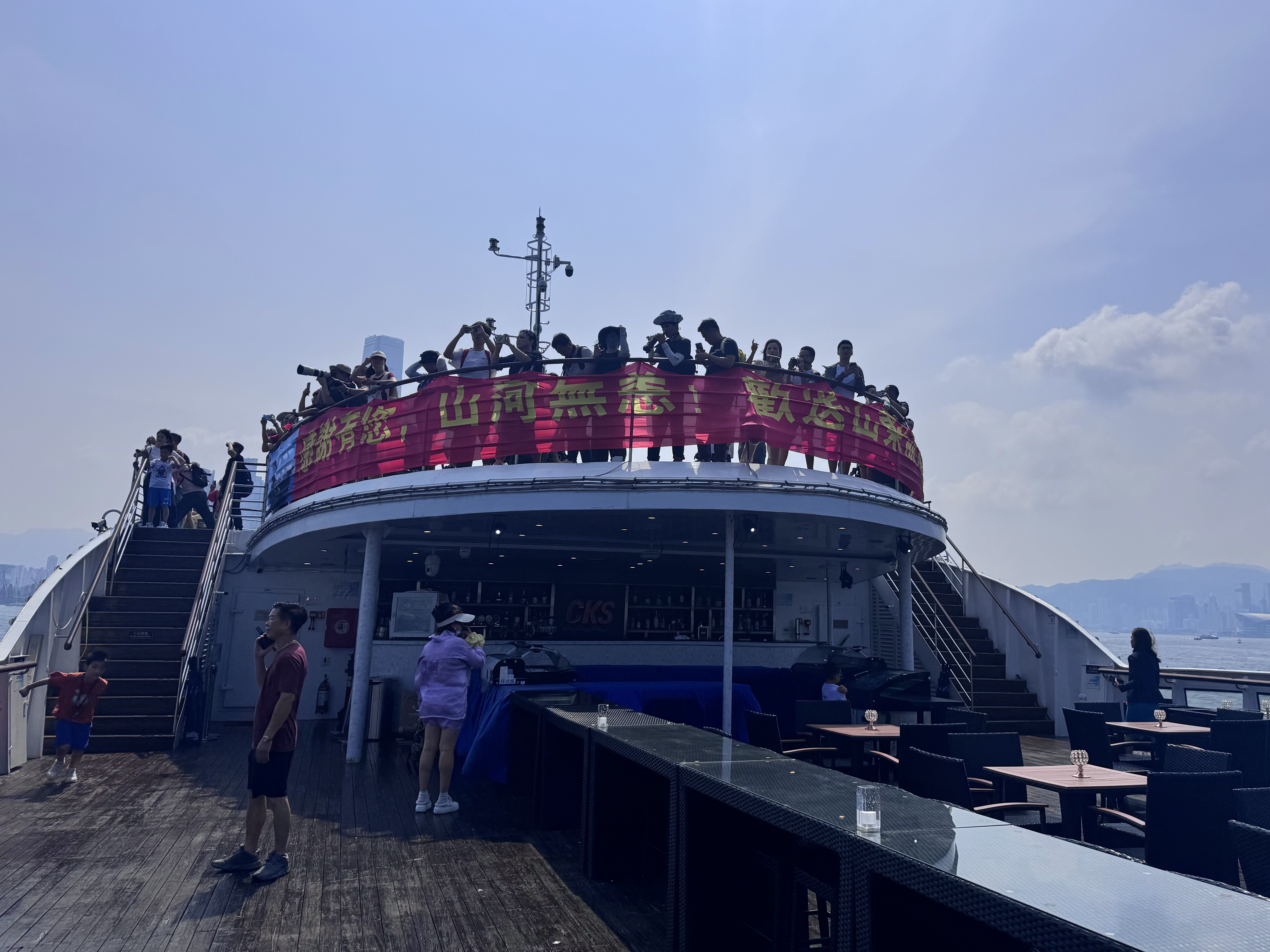 上午10時,「東方之珠號」緩緩駛出碼頭,維港此刻微風徐徐,碧波蕩漾,明媚燦爛的陽光似乎也象徵着此刻歡送人群心中同樣明朗激動的情感。