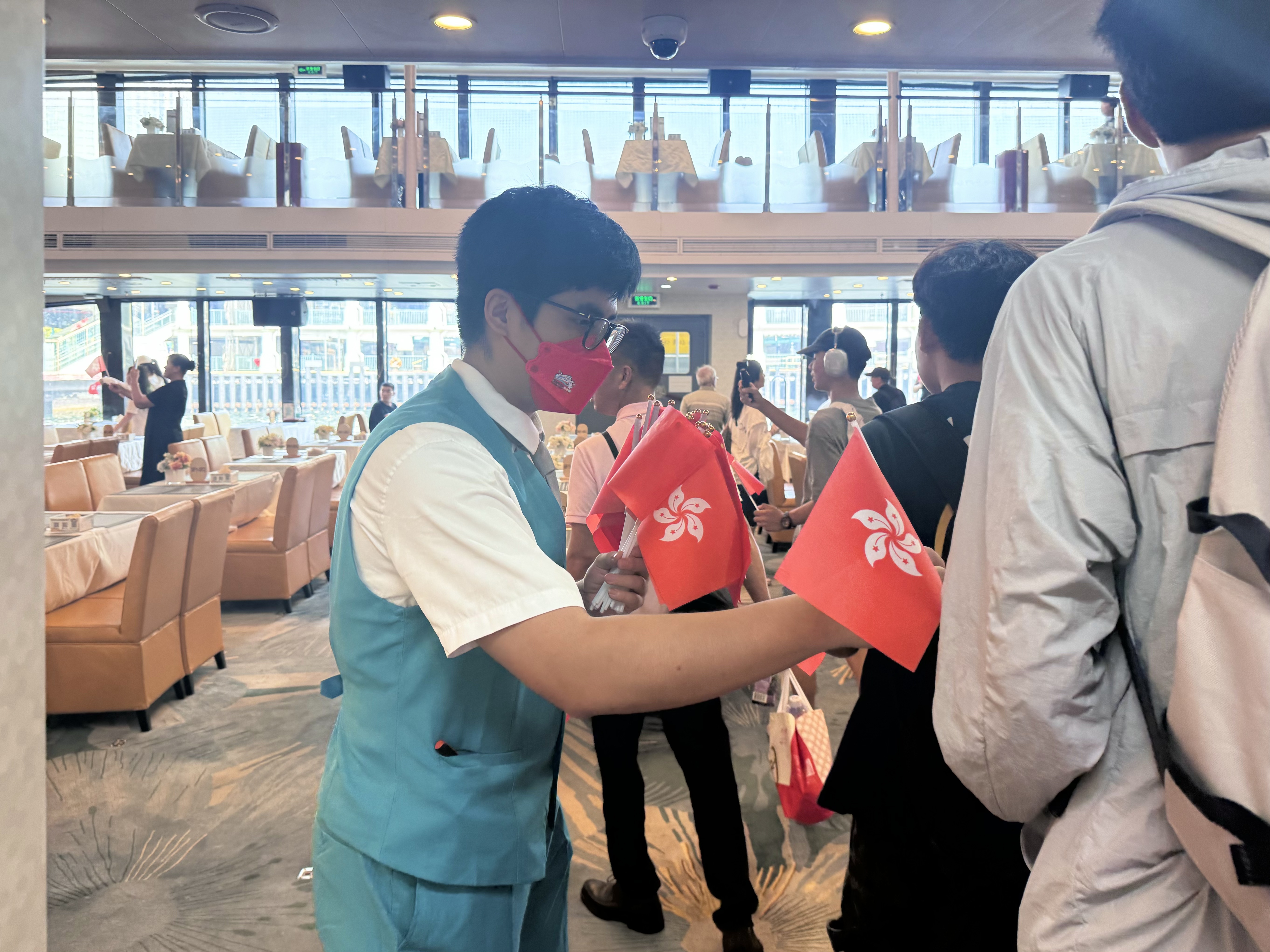 據東方之珠遊船有限公司副總經理胡慶鵬介紹,是次山東艦訪港適逢香港回歸28周年,他們的團隊專門策劃了相關的遊船航班,讓香港市民和遊客能夠在指定區域近距離地觀賞到航母編隊,「今日的送別航母航班是我們精心準備的,剛才也看到歡送船上的氛圍十分熱烈,大家也表達出對祖國、國防建設的熱愛和美好祝願。」