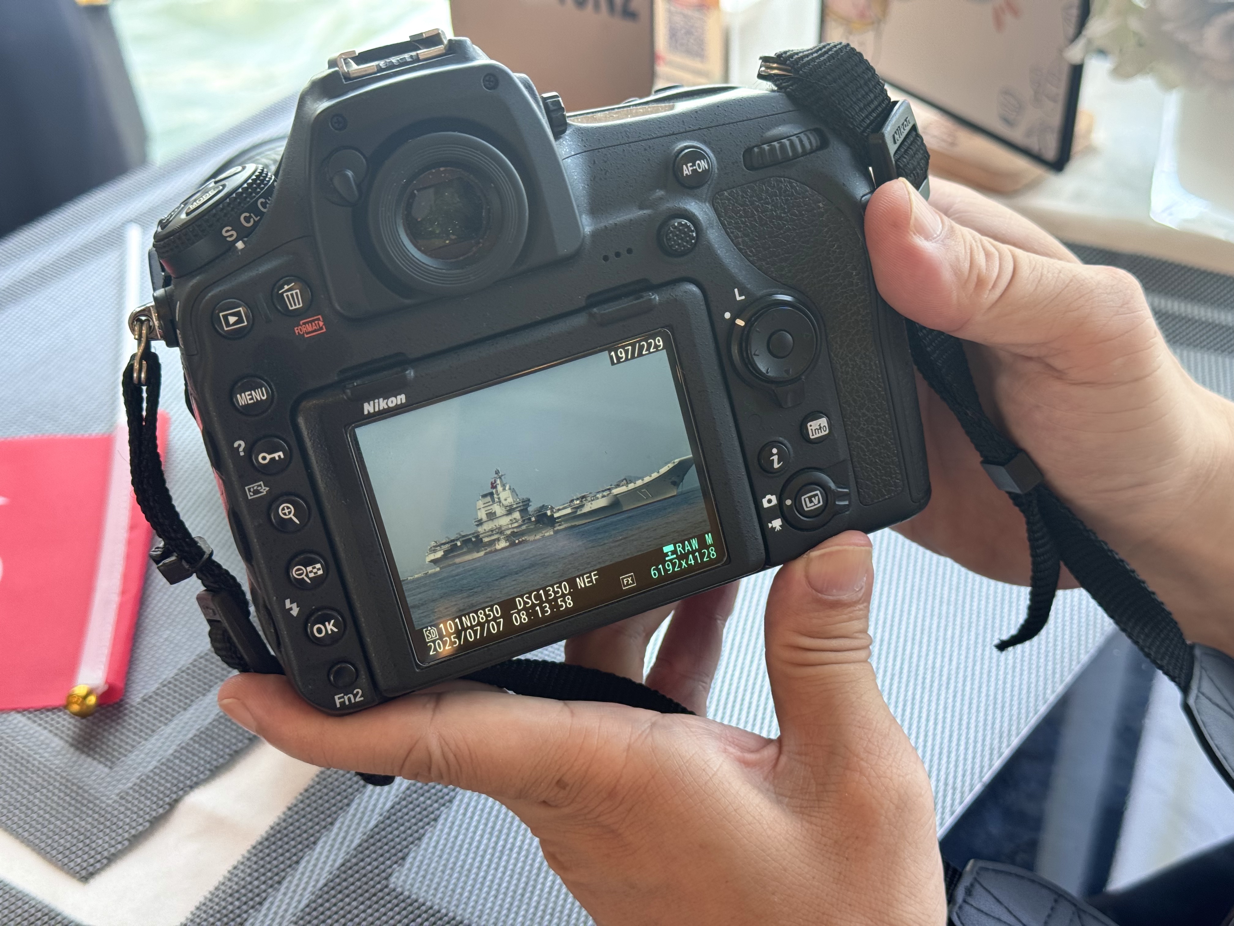 來自深圳的吳先生告訴記者,自己「追」山東艦兩天了,特意去了青衣、迪士尼拍攝,接着向記者展示自己從多角度拍攝的照片。他指出,中國軍事建設速度十分快,如今已經有三艘航母,作為青年一代,看到祖國的發展如此強盛,由衷地為祖國感到自豪。