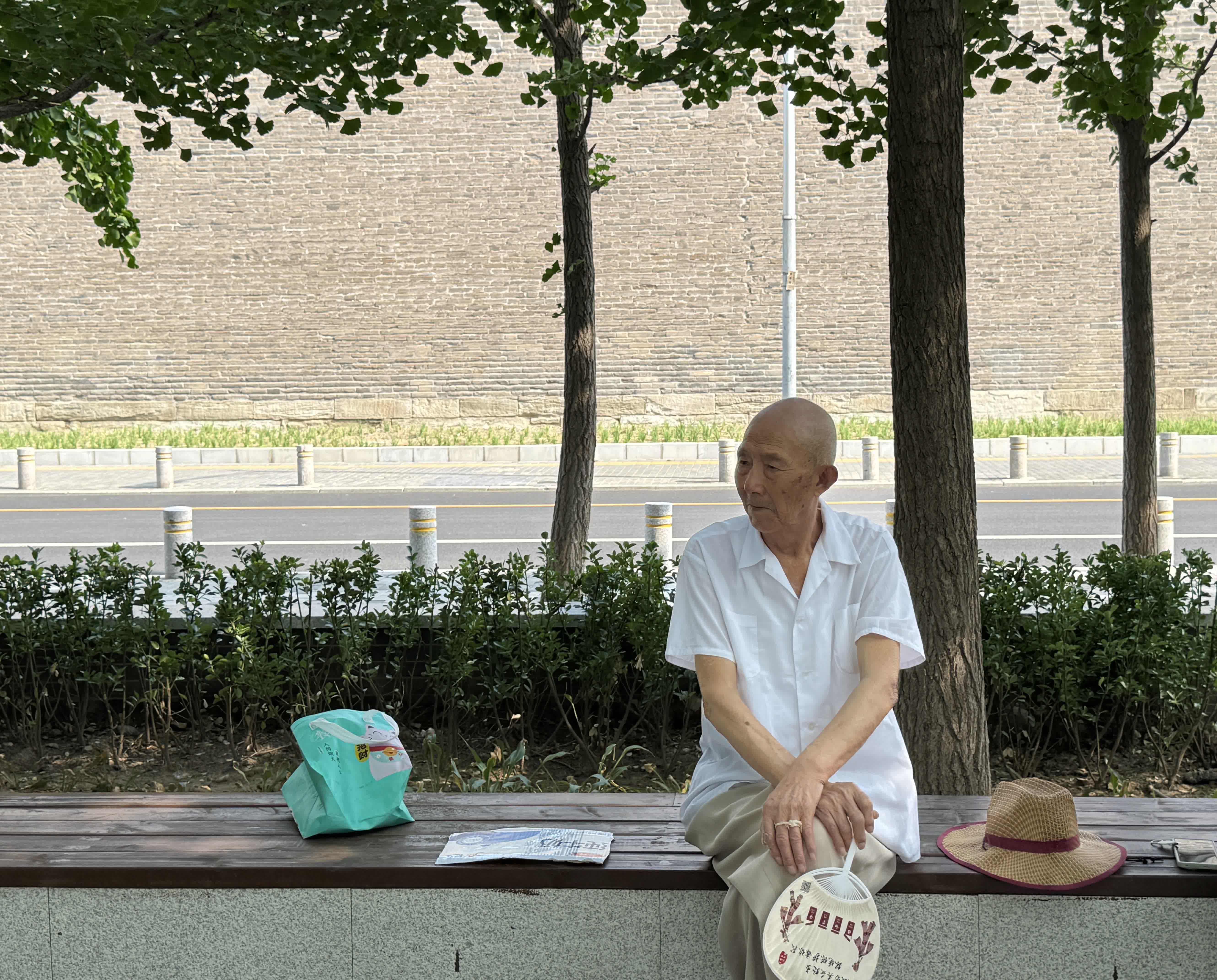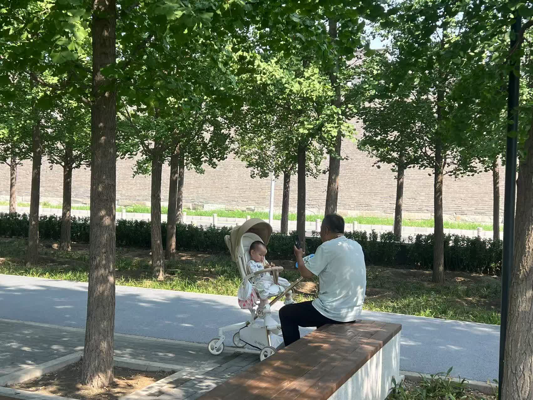 城牆四周綠樹如茵,步道蜿蜒,很多宛平城周邊居民正在遛彎晨練,不時有老人帶孩子在樹蔭下休息。一位老人告訴記者,這裏每天都有很多人來遛彎:「今天是7月7日,全中國人都要記得這個日子,沒有當年抗戰勝利,就沒有今天和平生活。一定要不忘國恥!」