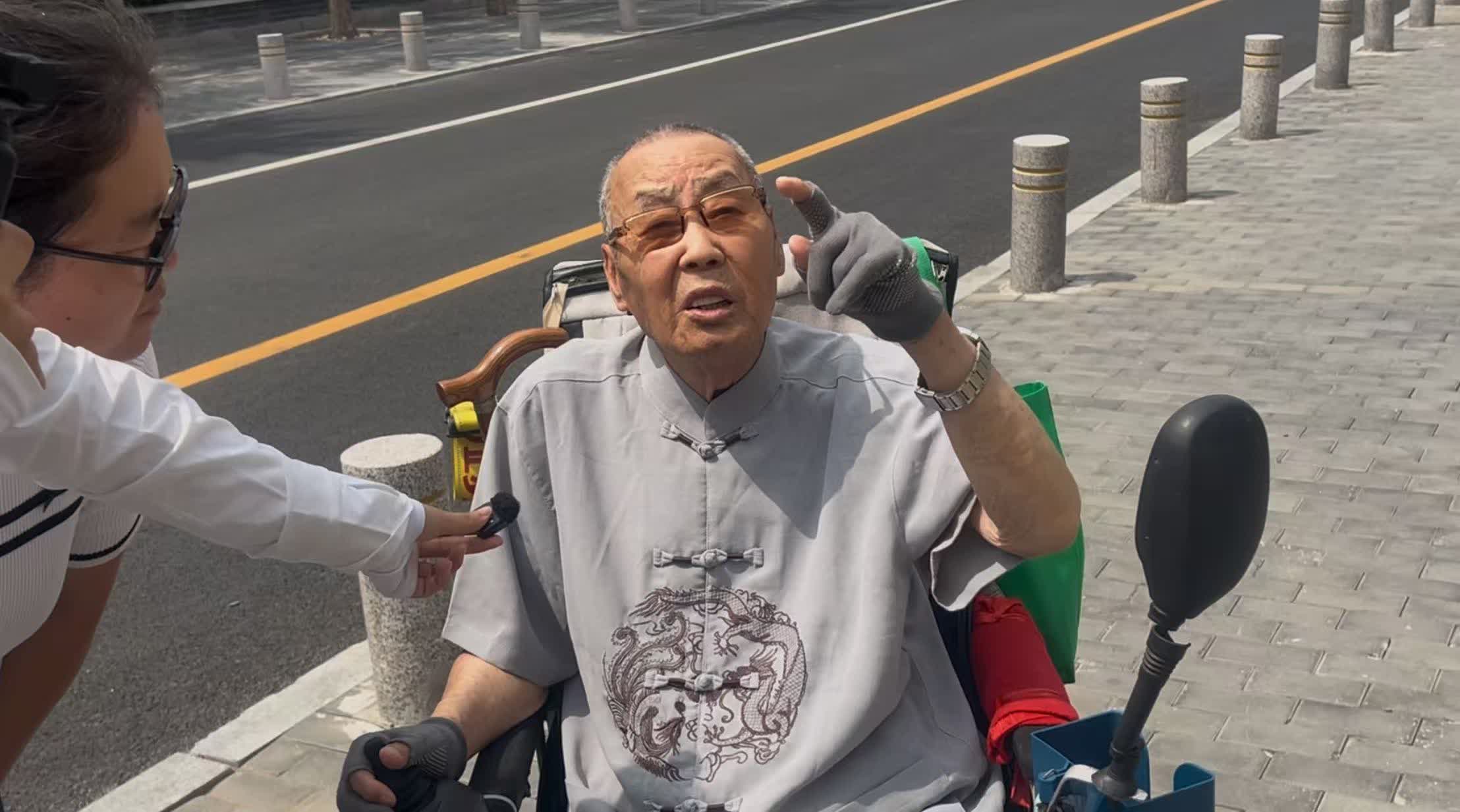 98歲退伍老兵劉志榮就住在北京宛平城附近,幾乎每天都會路過城牆,他在7日當天中午專門來到宛平城城牆炮彈坑遺址下觀瞻遺址,回望歷史。雖然已近百歲,老人家身體硬朗思路清晰,依舊每天看新聞讀報紙,他也關注到航母訪港的新聞,在宛平城牆下他告訴記者:「看着日本侵略者留下的炮彈坑,想着我們中國有了自己的航母非常自豪,航母震撼了香港市民也震撼了全世界,這是全國人民的驕傲!」