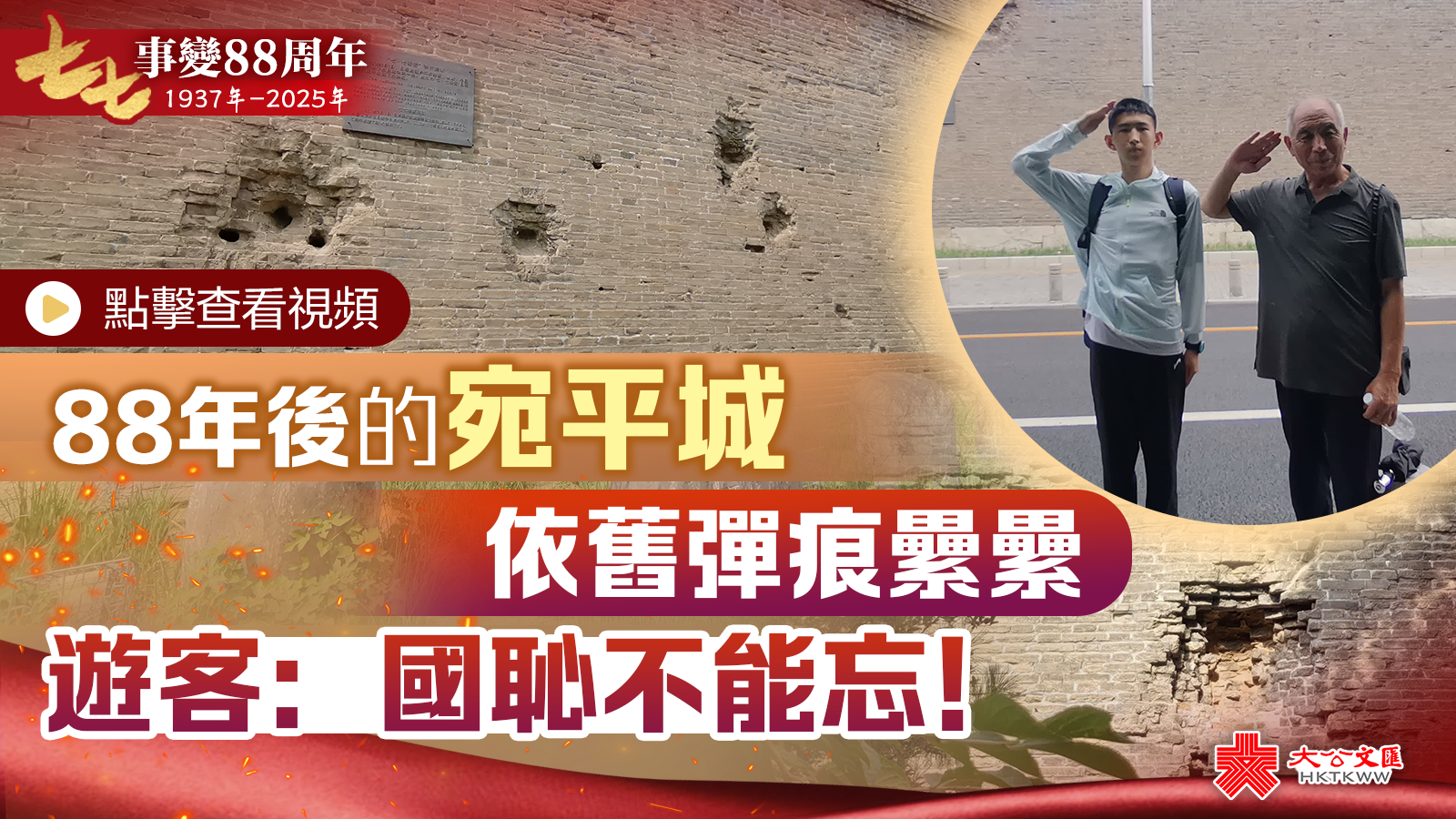 (大公文匯網 記者 馬曉芳、郭瀚林、李暢 北京報道)今天是「七七事變」爆發88周年紀念日。記者一早來到宛平城看到,當年日軍留下的炮彈坑歷歷在目。