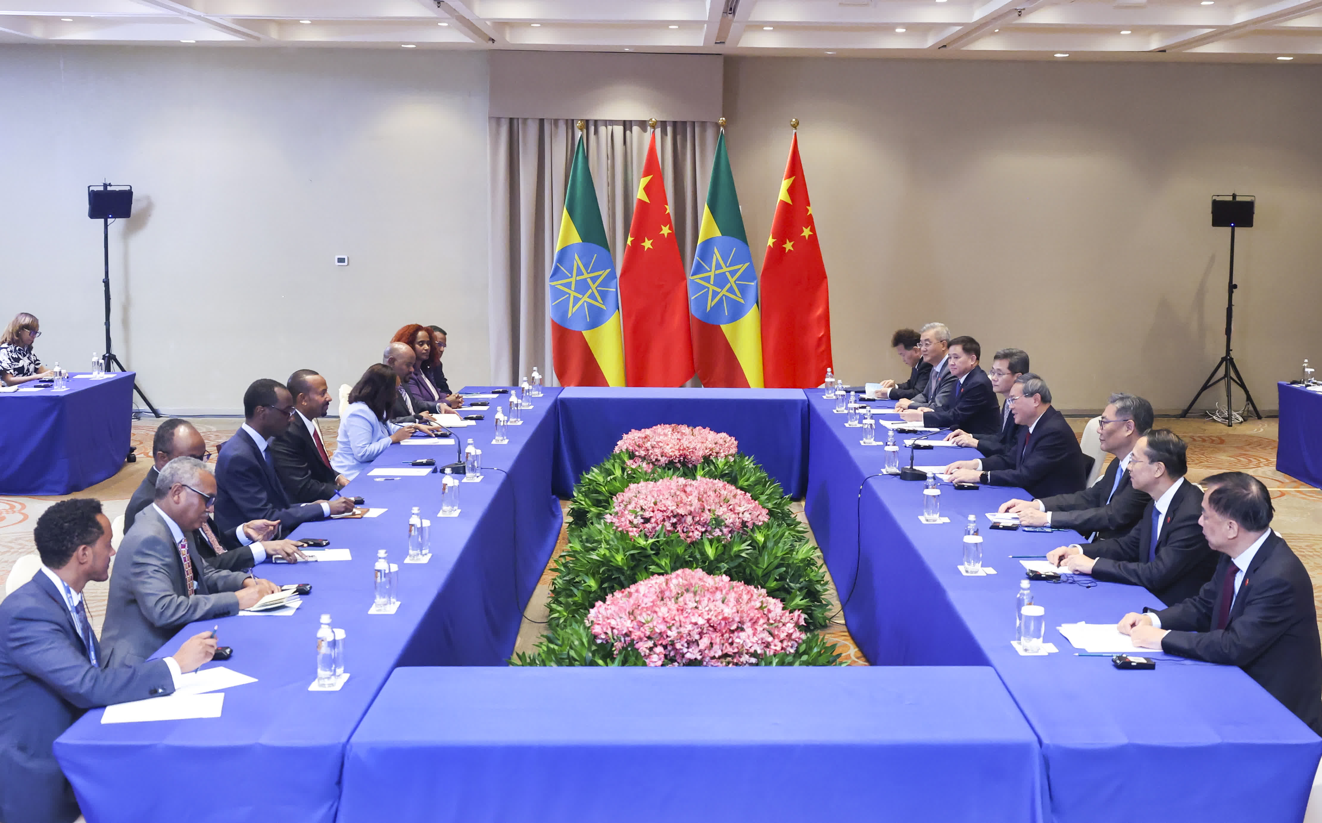 李強表示,中國同埃塞建交55年來,兩國始終真誠相待、守望相助。今年6月,習近平主席向中非合作論壇成果落實協調人部長級會議致賀信,宣布了中國對53個非洲建交國實施100%稅目產品零關稅等重要新舉措。中國願同埃塞方以落實新舉措為契機,推動中非合作論壇北京峰會成果進一步全面落地,深化兩國高質量共建「一帶一路」等全方位合作,努力把中埃塞關係打造成為構建新時代全天候中非命運共同體的典範。