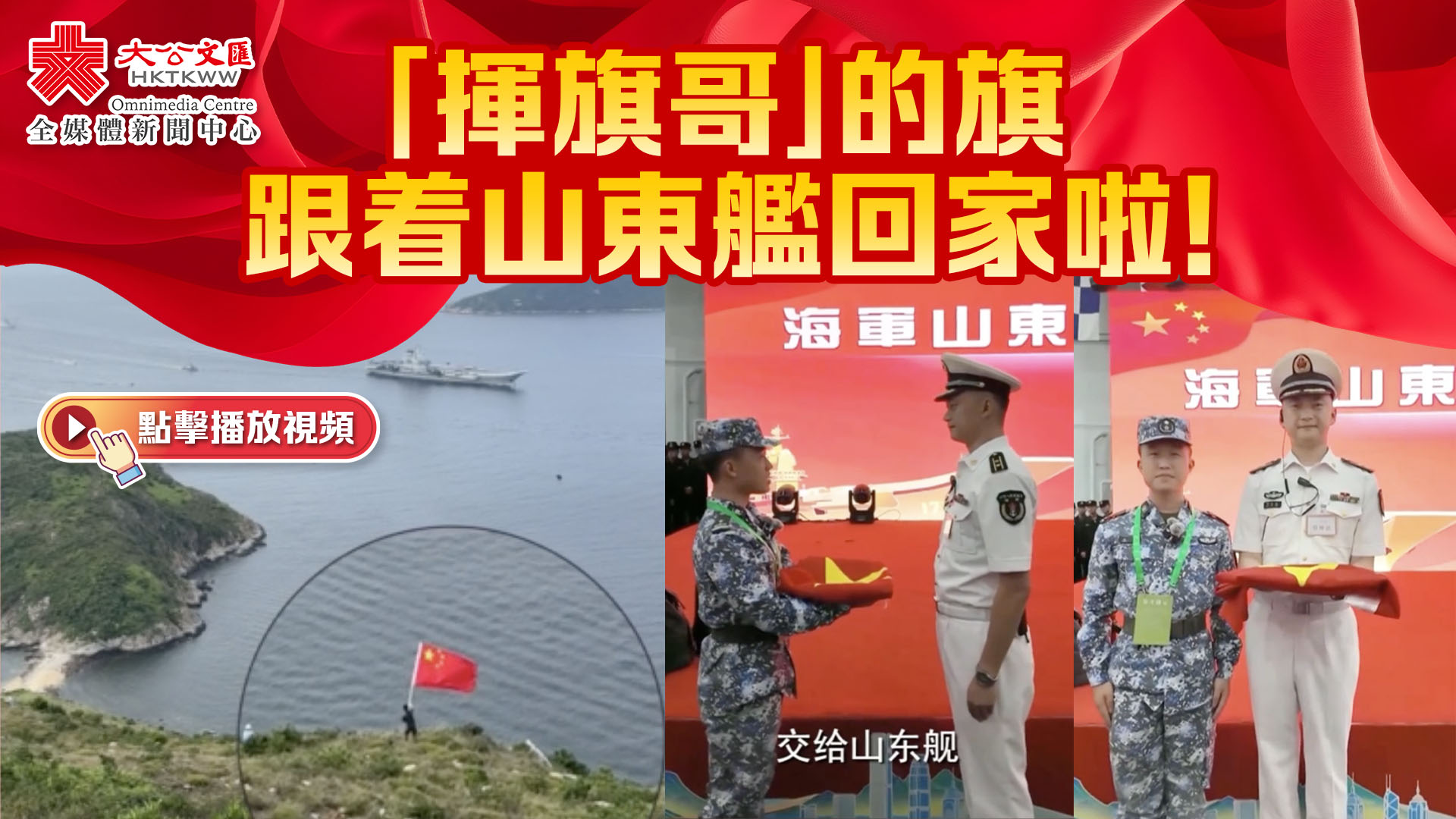 山東艦來時,阿兵以國旗迎接;山東艦返程之時,帶上了這面國旗,也帶上了無數香港市民對祖國的衷心祝福。