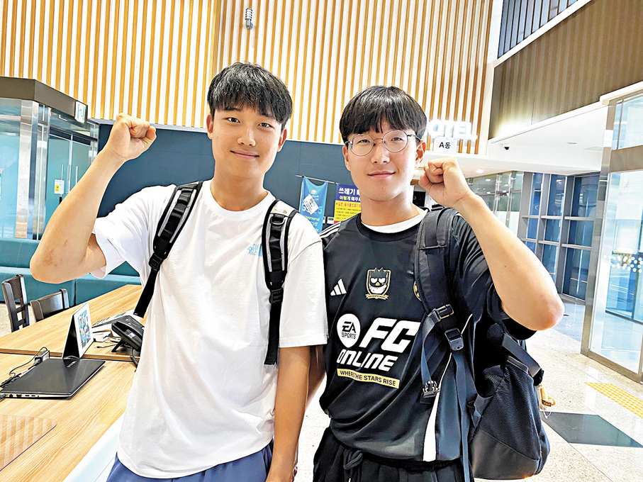 兩人原來是由離龍仁230多公里的光州前來觀賽,許先生為我們當翻譯說,朋友Shin(譯名申)是光州足球隊球迷,身上的Sanrio球衣便是去年的特別版。兩人在大學因踢足球結緣,不時到首爾附近看球賽,這次是首次來龍仁市龍體育場觀賽。記者因看到球衣上的卡通人物被吸引,也問到同是FC光州球迷許先生怎樣看中韓的足球文化,特別是相比周邊商品和球衣等等,許先生坦言「韓國的文化會比較強烈」,「有很多不一樣的如球衣、圍巾各種東西。」Shin則舉起兩隻拇指大讚韓國足球文化,不過就笑言「球衣賣太貴」。