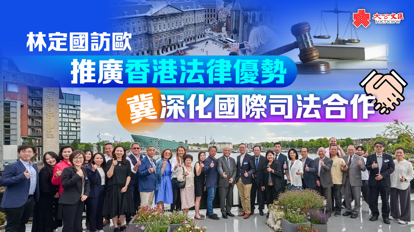 大公文匯全媒體報道,律政司司長林定國資深大律師7月6日(阿姆斯特丹時間)在荷蘭阿姆斯特丹展開歐洲訪問行程,與國際組織、國際法院法官、政府官員及當地商界會面,推廣香港的法律制度和服務,以及作為亞太區國際法律及爭議解決中心的發展。
