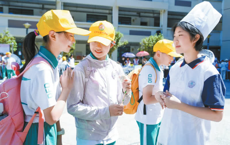 在龍岩一中錦山學校,學生們參與勞動實踐,體驗非遺技藝,在動手操作中理解「勞動創造幸福」,感受勞動的樂趣和傳統文化的魅力。「和大家一起製作非遺作品,我體會到傳統文化的魅力,也感受到團結協作的力量。」廣州市越秀區東風東路小學五年級劉千寧分享道。