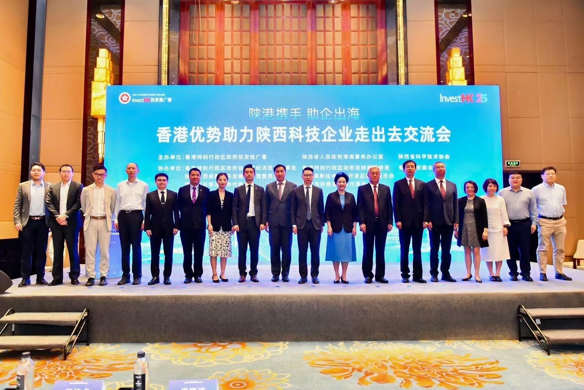 投資推廣署今日(七月八日)於陝西省西安市與陝西省人民政府港澳事務辦公室(省港澳辦),以及陝西省科學技術協會(省科協)共同主辦「陝港攜手 助企出海——香港優勢助力陝西科技企業走出去」交流會,是次活動亦獲香港特別行政區政府駐成都經濟貿易辦事處(駐成都辦)、香港特別行政區政府駐陝西聯絡處、陝西省西咸新區開發建設管理委員會,以及西安高新技術產業開發區管理委員會(西安高新區管委會)等部門作為協辦單位。