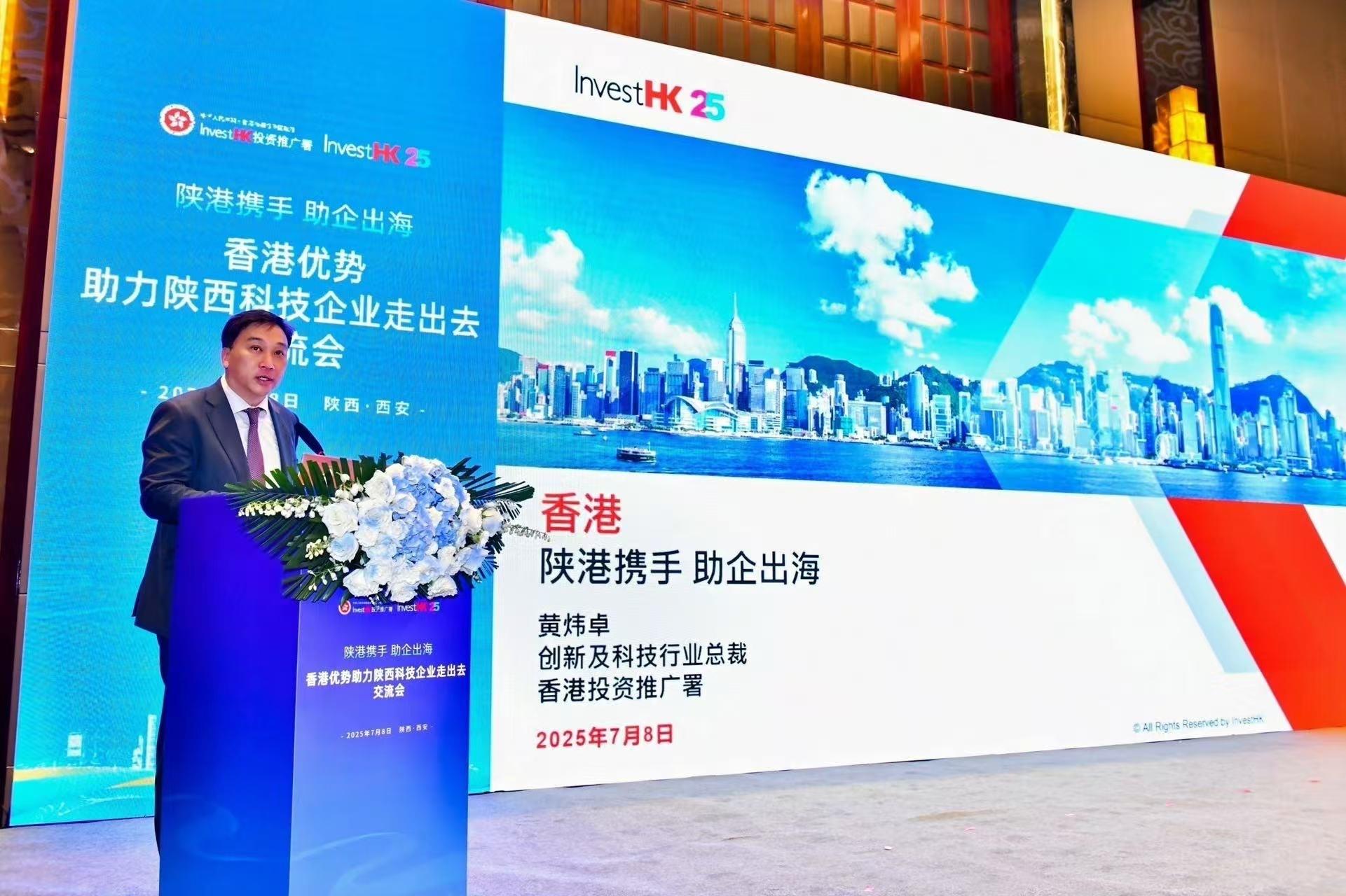 投資推廣署創新及科技總裁黃煒卓在推廣香港創科機遇主題演講時表示:「我們擁有多項發展創科的優勢,包括頂尖學術研究與人才庫、世界級研發基礎設施、健全的知識產權保護,以及特區政府的堅定支持。二○二四年,投資推廣署協助的創科公司數量增至120間在香港拓展業務,是該署支援最多的行業,反映出國際對香港創科發展的信心與肯定,也進一步印證香港作為『雙向門戶』的戰略角色。近期,香港創科領域在多方面值得關注,例如首批低空經濟「監管沙盒」試點項目在香港落實,成為推動香港發展的嶄新動力。另外,香港新藥審批機制更新,加速新藥上市進程。我希望陝西省高新科技企業能把握香港多元化機遇,拓展海外市場。」
