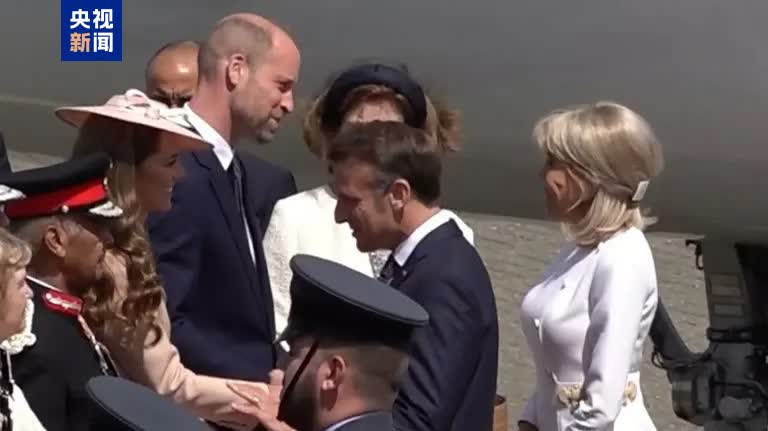 英國王儲威廉及其妻子凱特王妃前往英國諾霍特皇家空軍基地迎接馬克龍及其夫人。