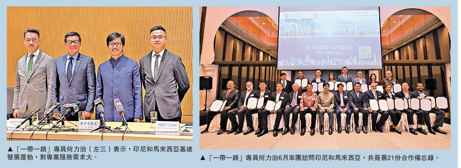 何力治日前接受《大公報》訪問時表示,印尼和馬來西亞基建發展蓬勃,印尼新首都和馬來西亞鐵路運輸系統新項目對專業服務需求大,香港在綠色金融、綠色建築和專業服務對接國際標準,未來有空間開展合作,深耕東盟市場。