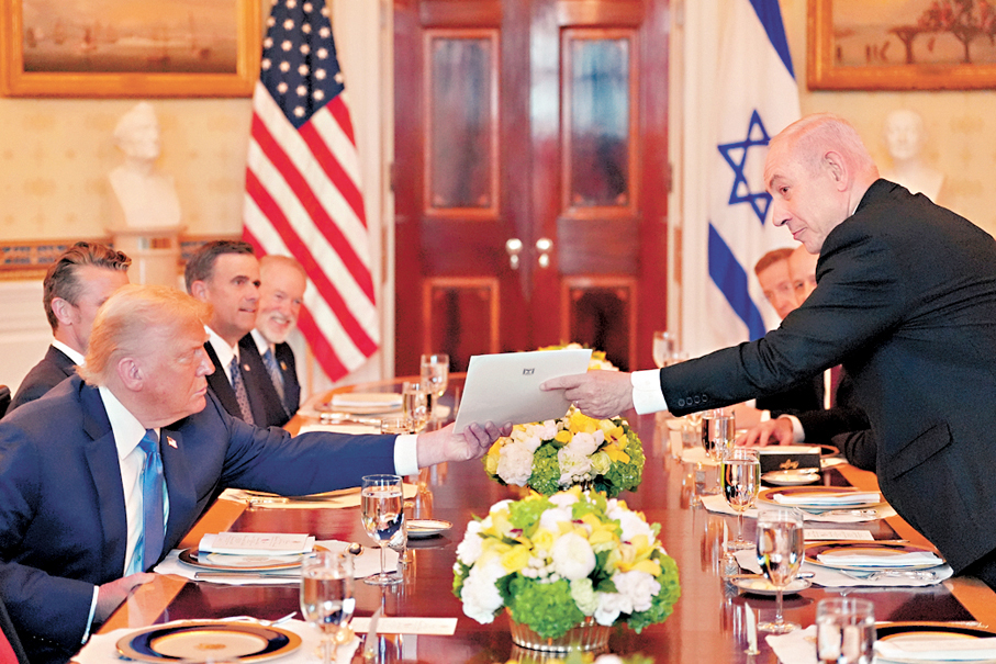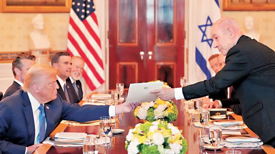 香港文匯報報道,美以領導人及雙方的高級顧問周一(7月7日)在白宮藍廳舉行私人晚宴,在晚宴開始前,以色列總理內塔尼亞胡向美國總統特朗普獻上「大禮」,就是一封提名特朗普角逐諾貝爾和平獎的信。