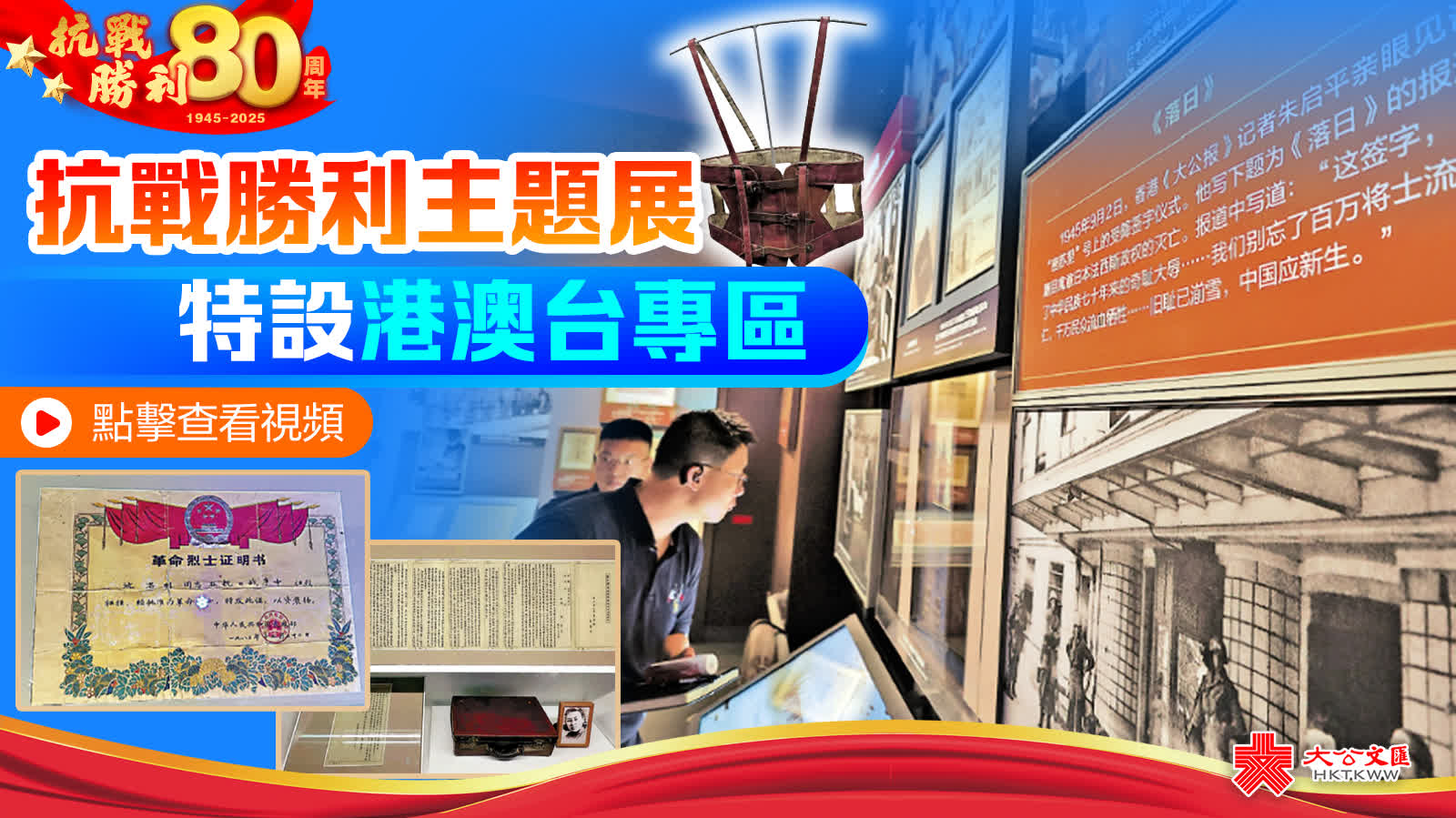 展覽特設港澳台同胞抗日鬥爭部分,通過圖文影像展示宋慶齡在香港創立保衛中國同盟為八路軍、新四軍籌集資金物資,並借助立體圖形呈現了轟動香港「一碗飯運動」和澳門鏡湖醫院救助難民的故事。