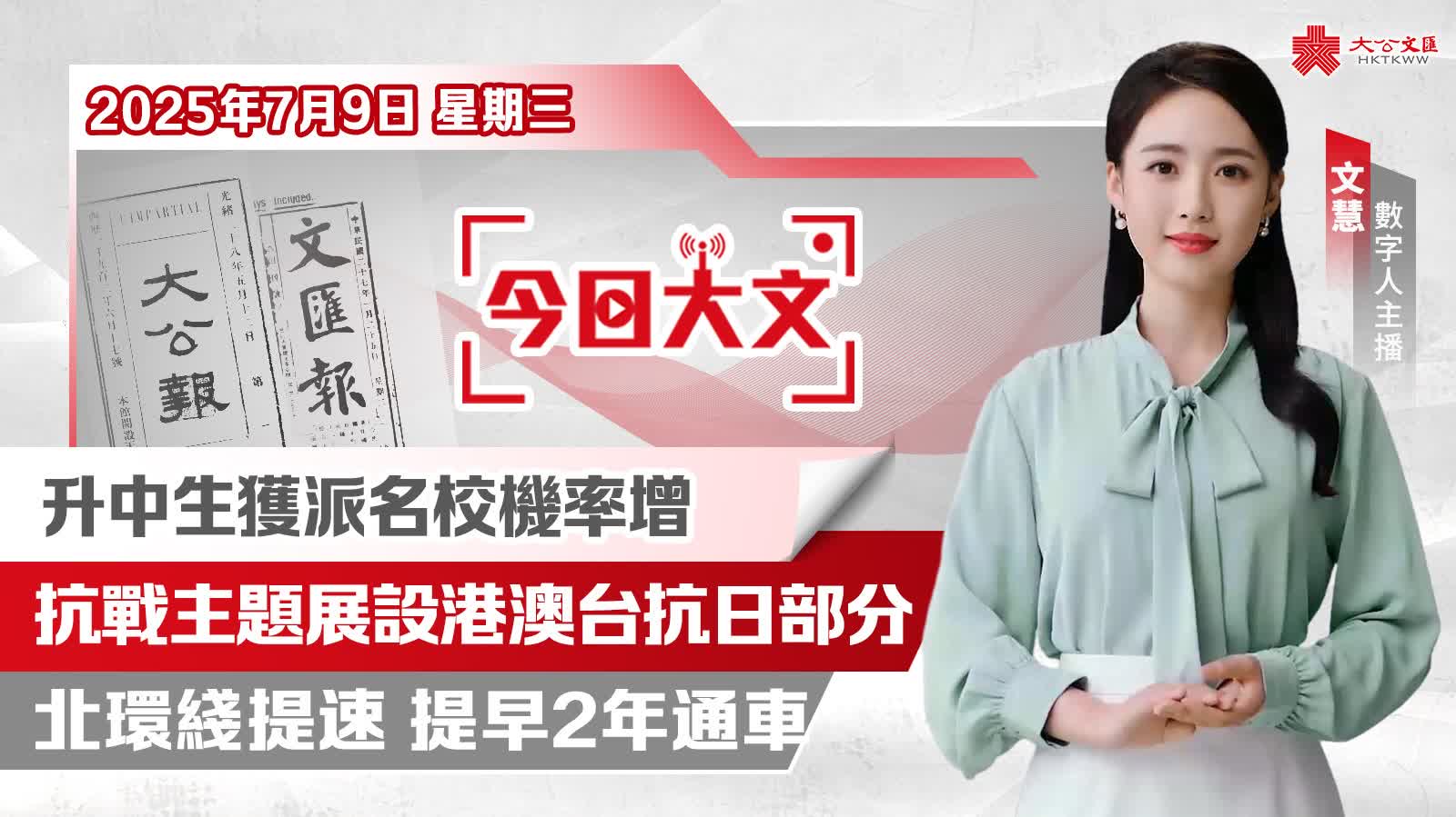 今天是2025年7月9日(星期三),大公文匯網與您速覽報紙看點。