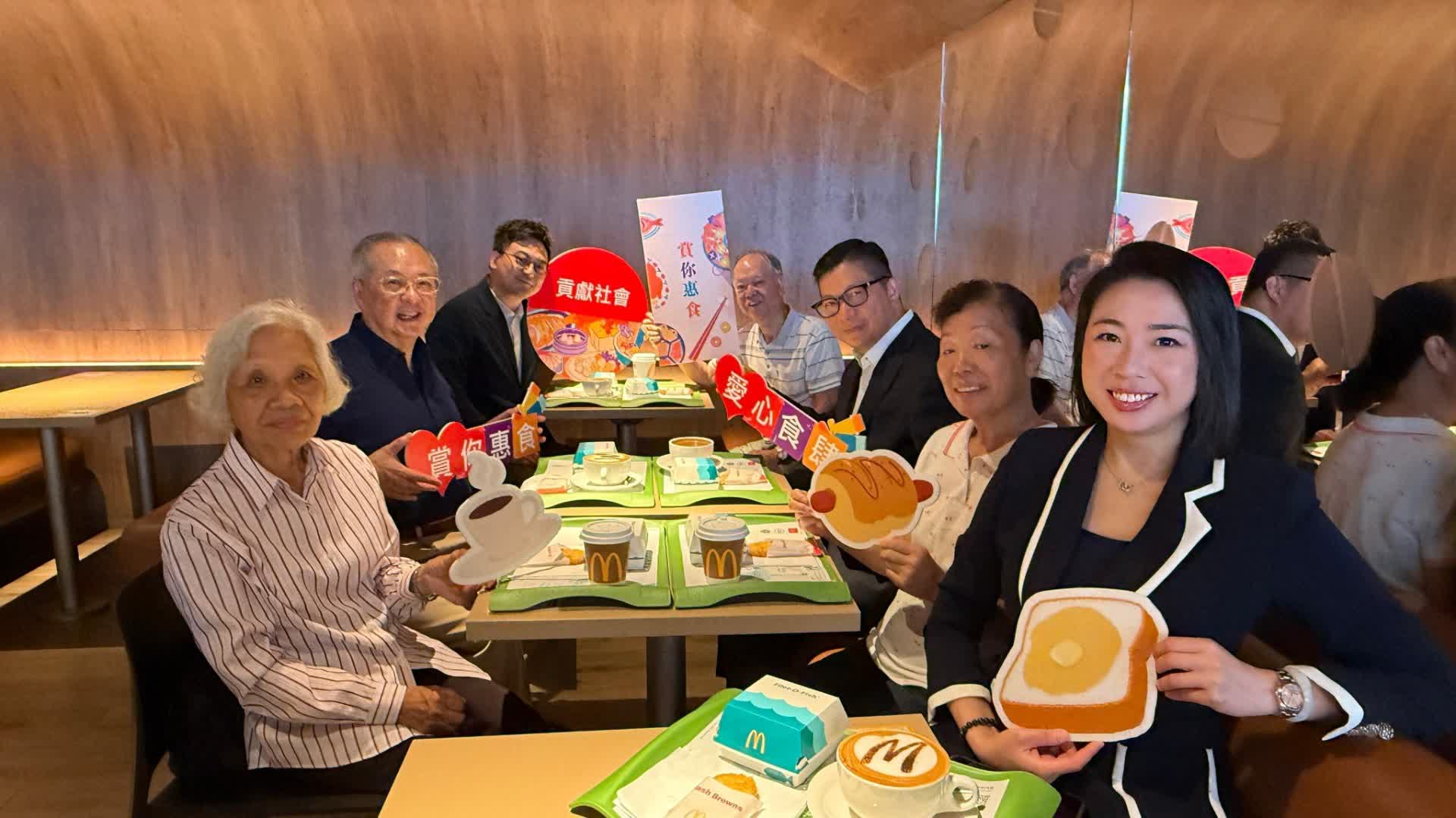 大公文匯全媒體報道,保安局局長鄧炳強和立法會議員張宇人今日(9日)與幾位「老友記」一同到麥當勞食早餐,推廣「愛心食肆」活動。