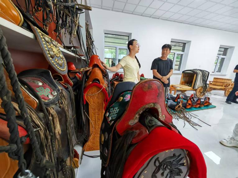 不遠處的敖力斯台民族手工藝品加工有限公司,傳承人阿拉坦巴根正帶領工匠製作傳統馬鞍。作為興安盟非物質文化遺產項目代表性傳承人,他將札薩克圖馬鞍工藝發揚光大,公司年創收30餘萬元,直接幫助9名脫貧人口就業,人均年增收1.2萬元。2023年新建的加工車間和展示廳,更讓這門傳統技藝煥發新生。