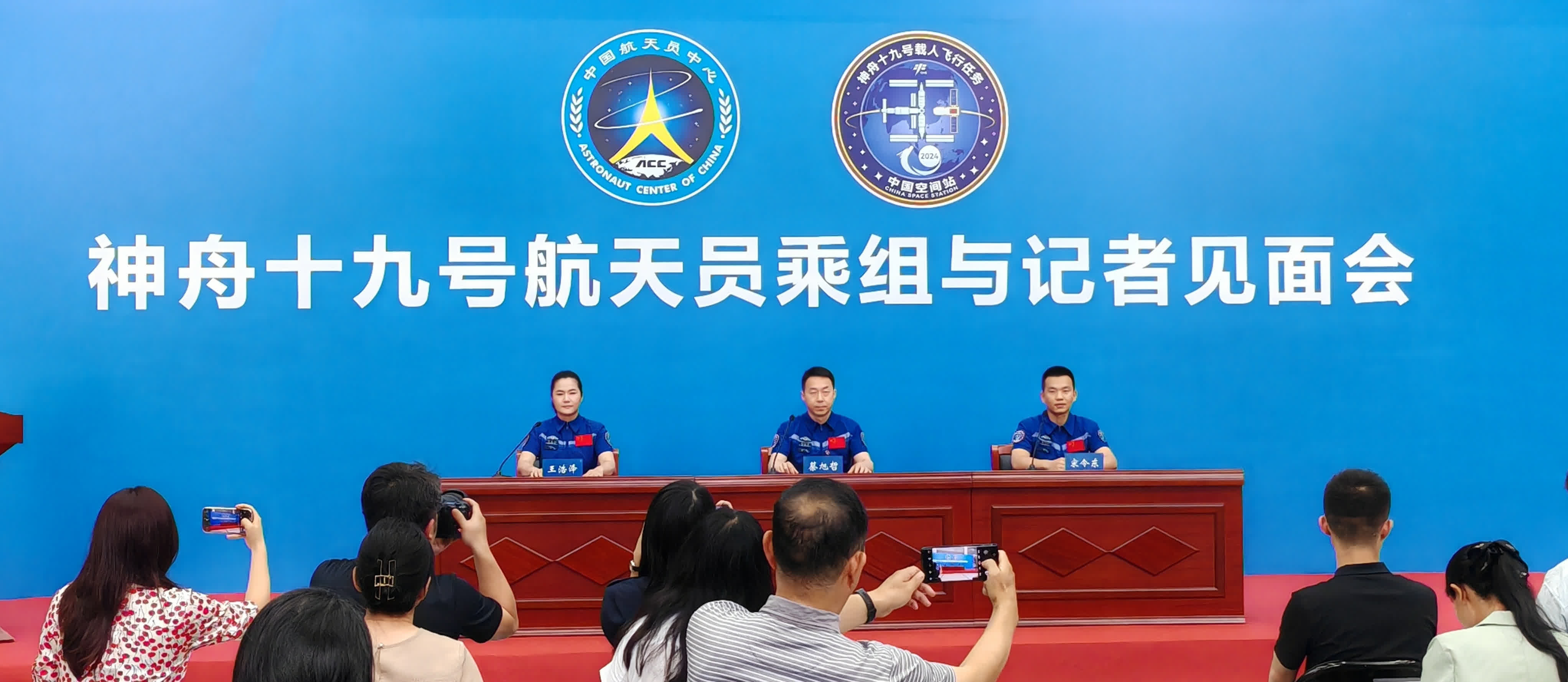 據央視新聞報道,2025年7月9日下午,中國航天員科研訓練中心在北京航天城舉行神舟十九號乘組與記者見面會。這是航天員蔡旭哲、宋令東、王浩澤返回60餘天后,首次面向媒體與公眾正式公開亮相,並分享了183天太空駐留的經歷與感悟。