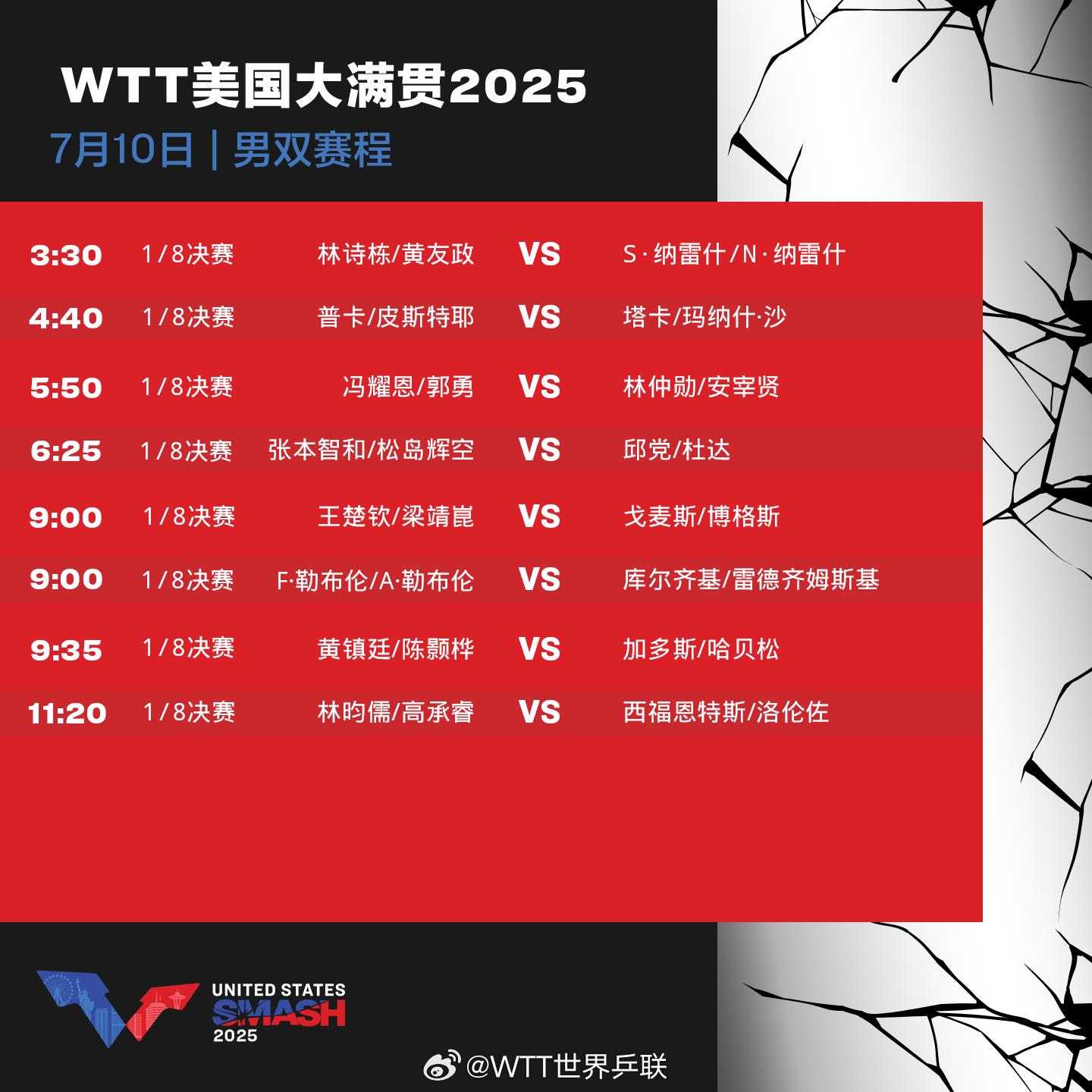 另外,國乒明日將進行10場比賽。其中,王楚欽搭檔梁靖崑,孫穎莎搭檔王曼昱分別衝擊男女雙8強。林詩棟將先後出戰男雙、男單、混雙,一日進行三場角逐。