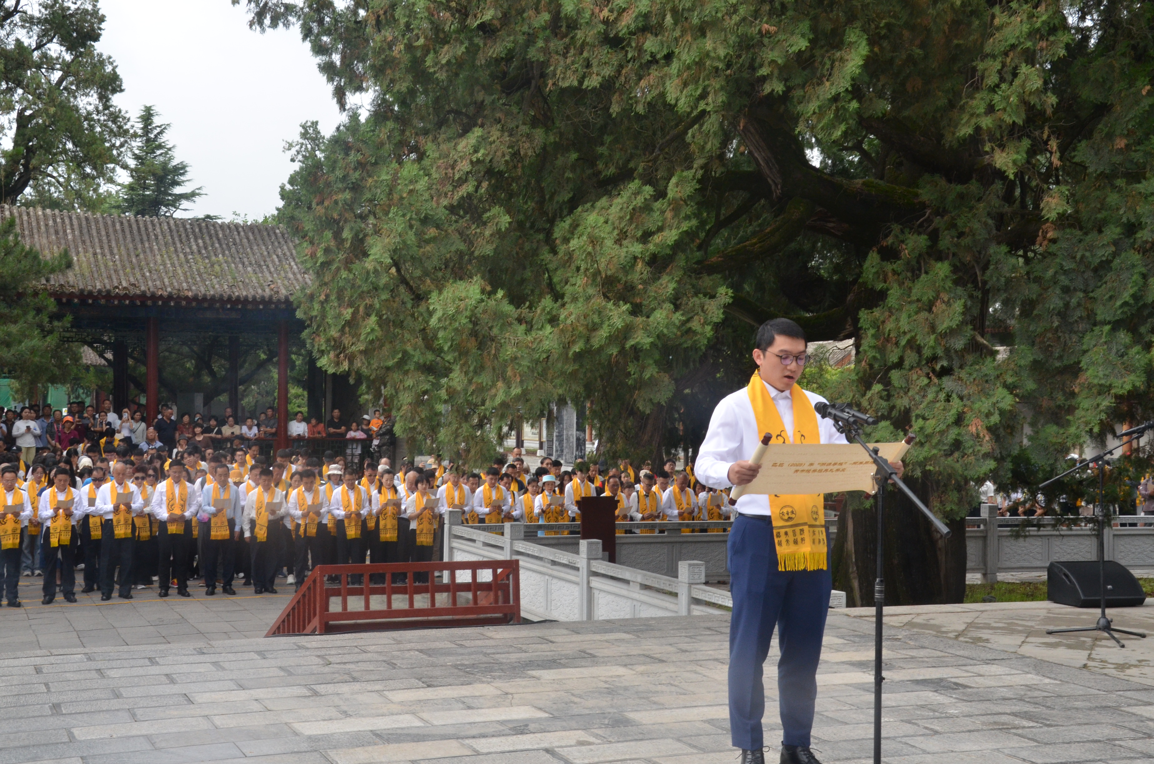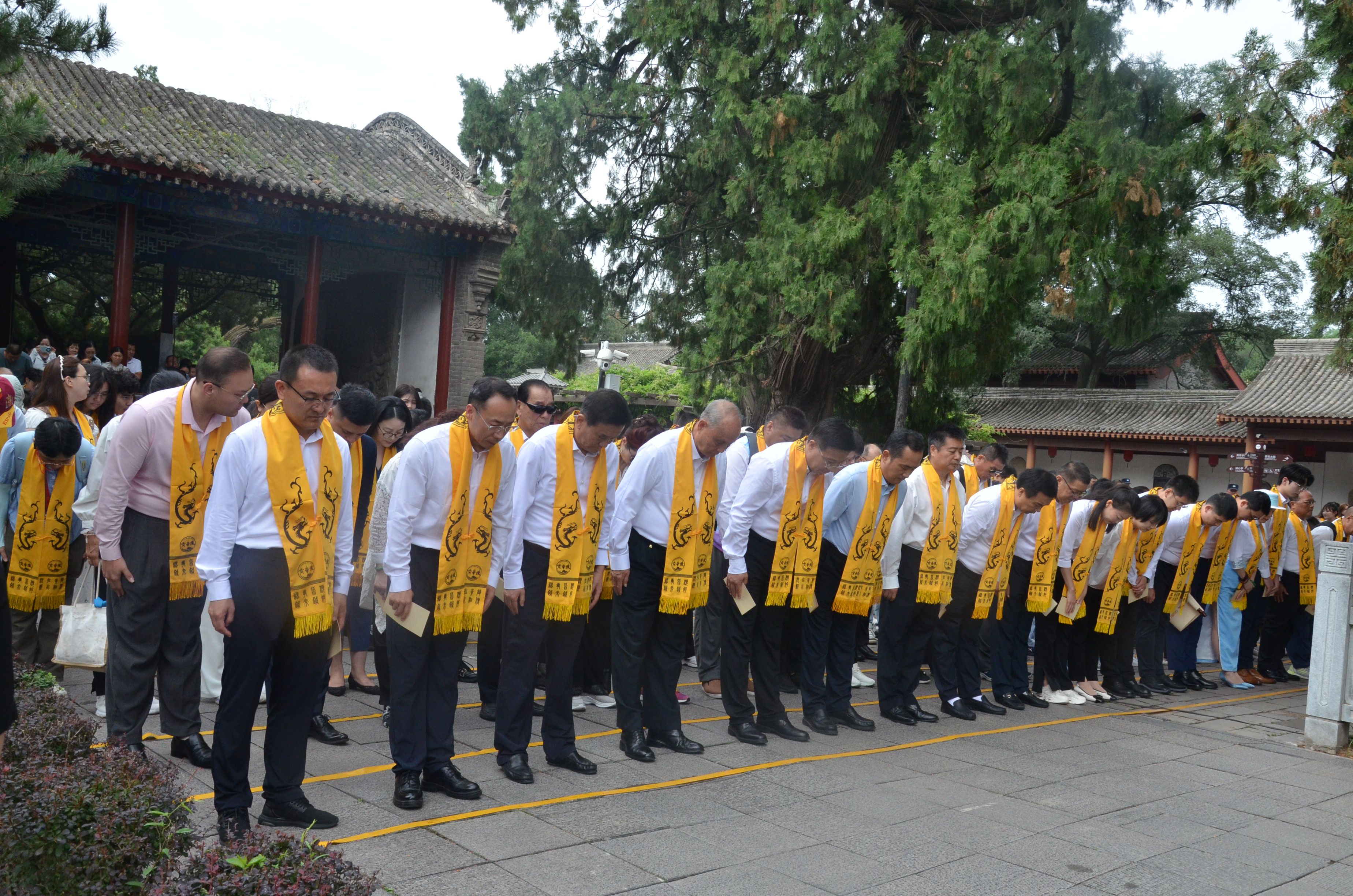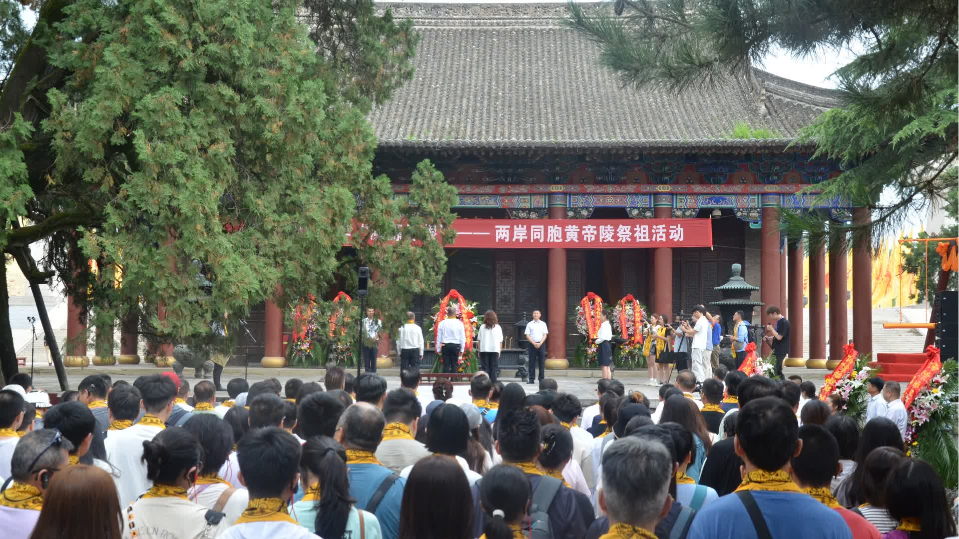 上午9時50分,祭祖典禮正式開始。全體肅立,擊鼓鳴鐘聲響徹山谷。中央台辦、國務院台辦副主任趙世通,陝西省委常委李明遠,中華民族發展基金會董事長林中森等八組嘉賓依次敬獻花籃,向軒轅黃帝行鞠躬禮。隨後,台灣世界和平親善會青年主委余曜州作為台灣青年代表帶領大家齊頌祭文。「兩岸同胞,同根同源,骨肉情長。炎黃子孫,風月同天,心心相依」的頌聲回蕩在現場,引發兩岸青年強烈共鳴。