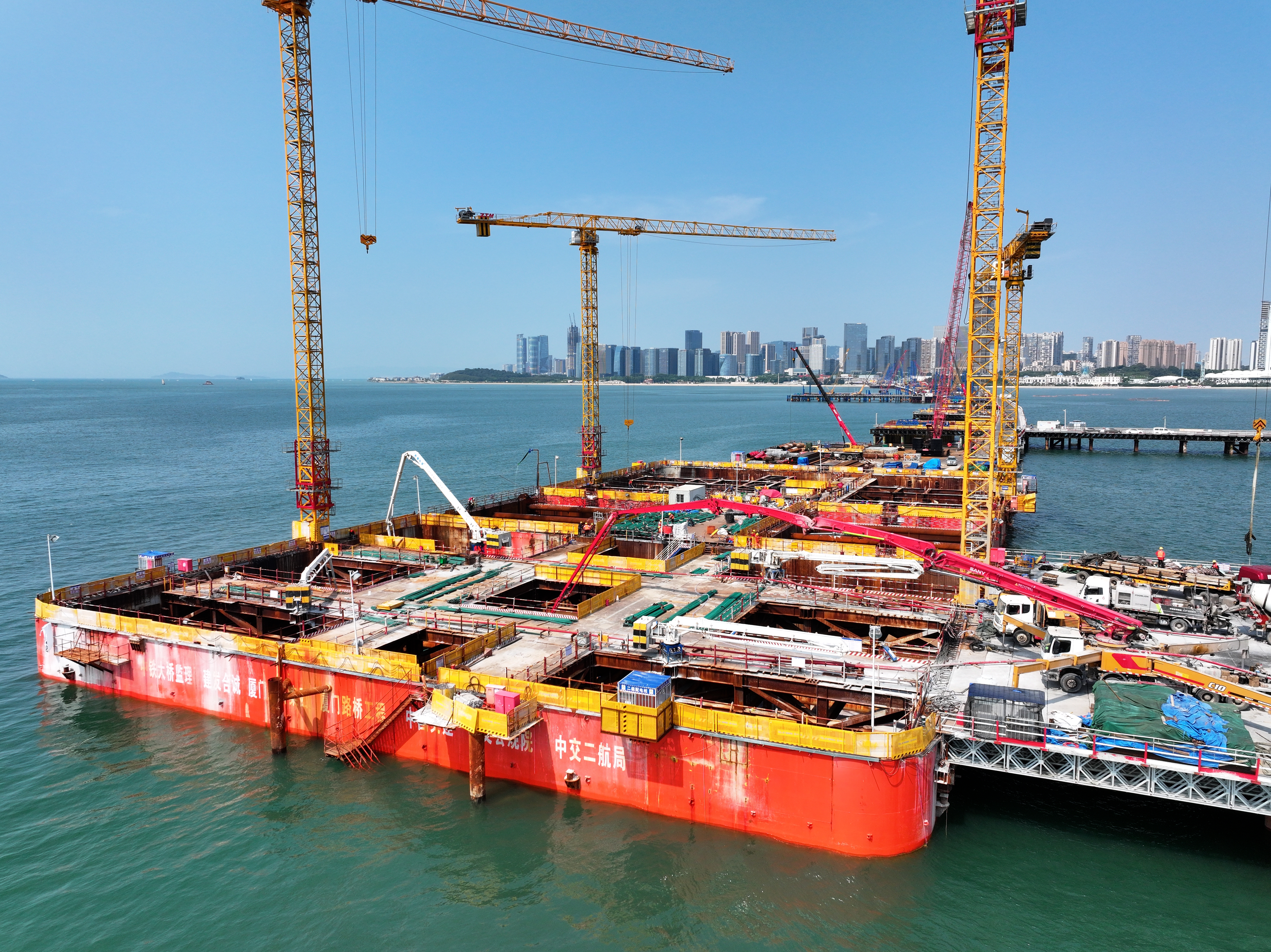 「從封底到頂板,歷時近半年,技術人員晝夜值守,實時監測混凝土坍落度、溫度等關鍵指標,確保澆築連續銜接不留冷縫,保障了沉井結構一次成優。」中交二航局廈金大橋(廈門段)項目副經理李洪軍說。