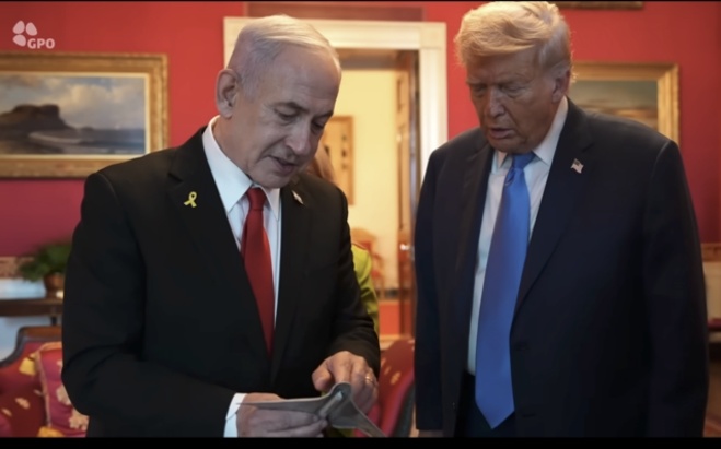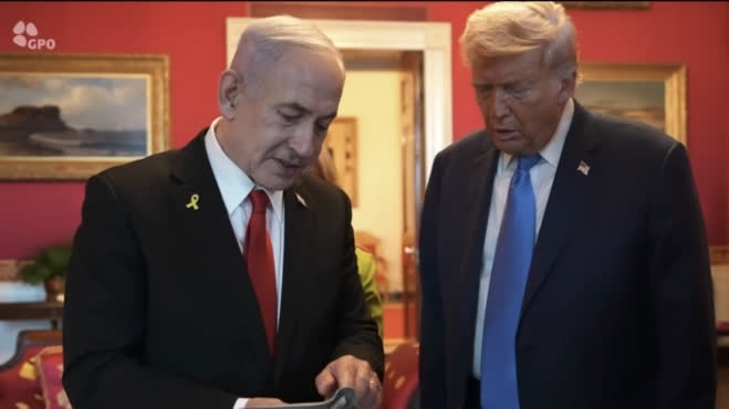 內塔尼亞胡送給特朗普的「特別禮物」在社交平台X上引發爭議。