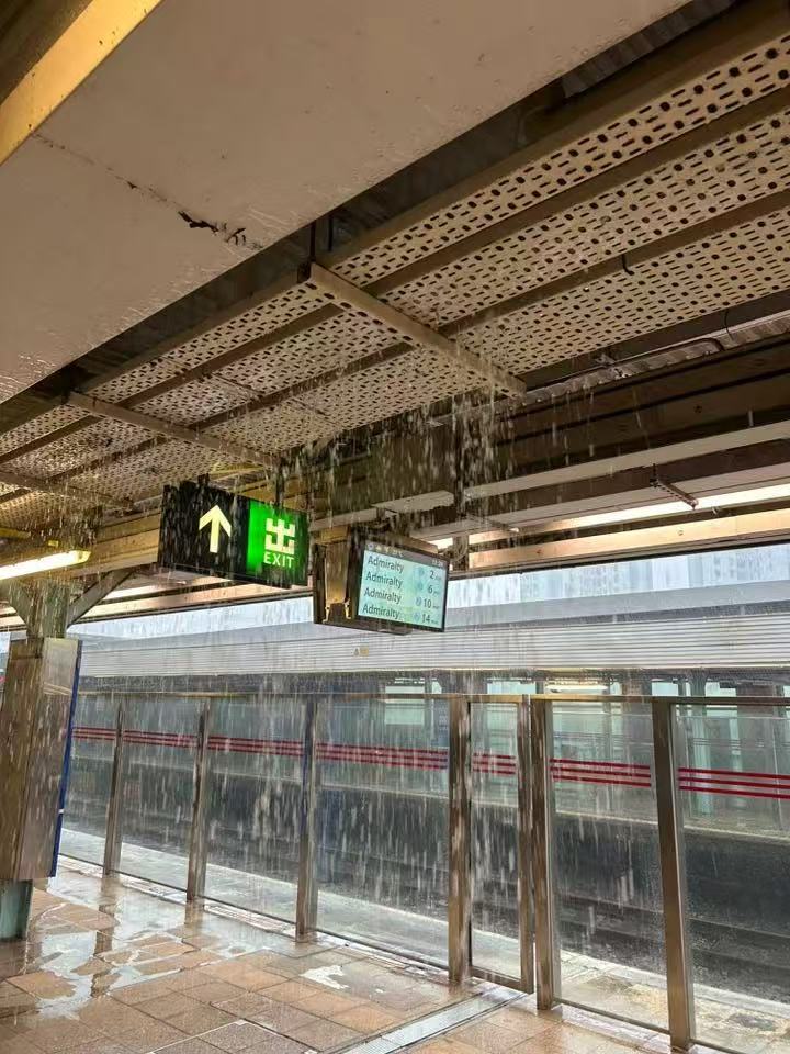 另外,據Facebook小組「MTR港鐵關注組」消息,中午12時31分,港鐵大圍站月台頂棚出現大面積漏雨現象,地面亦有積水。