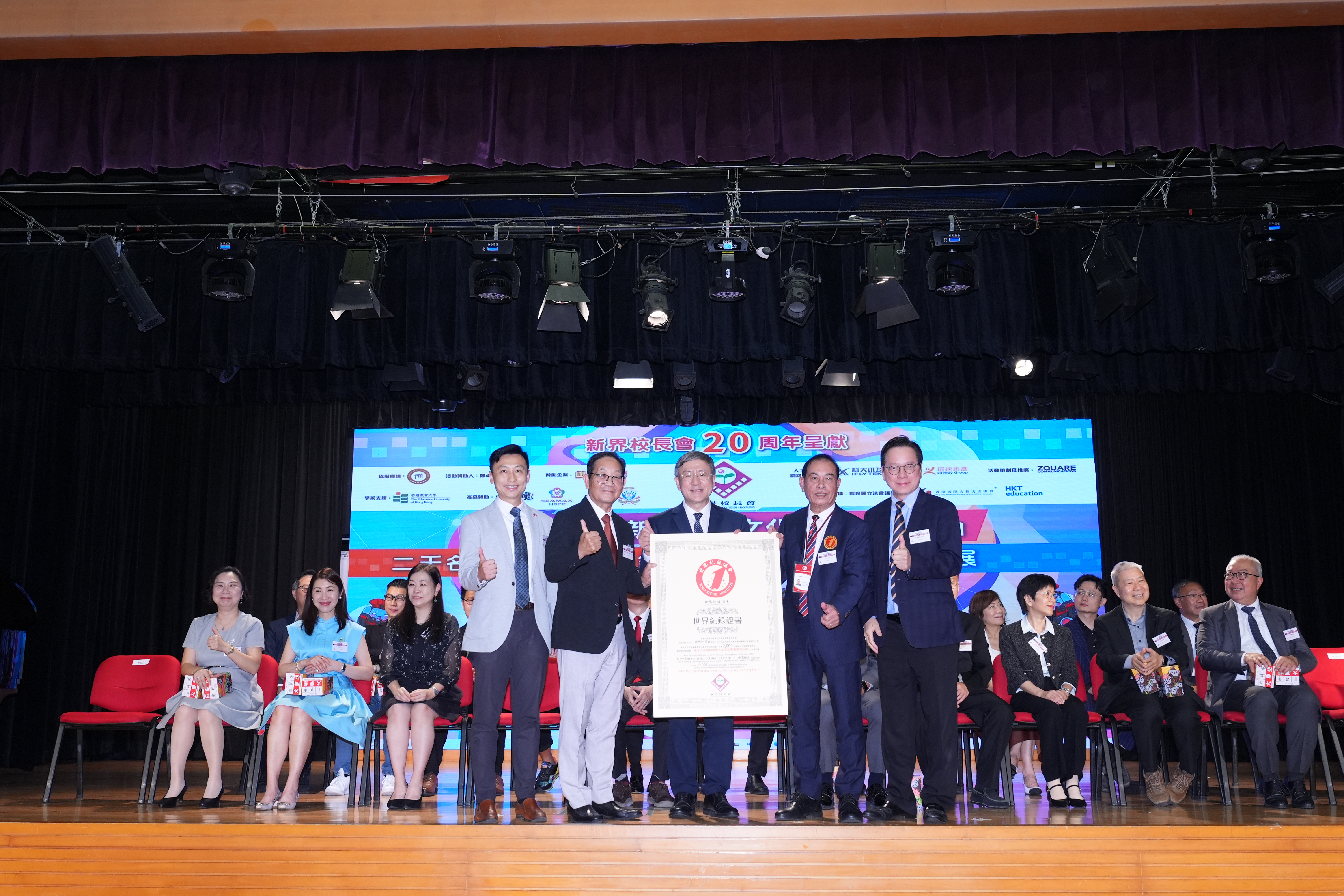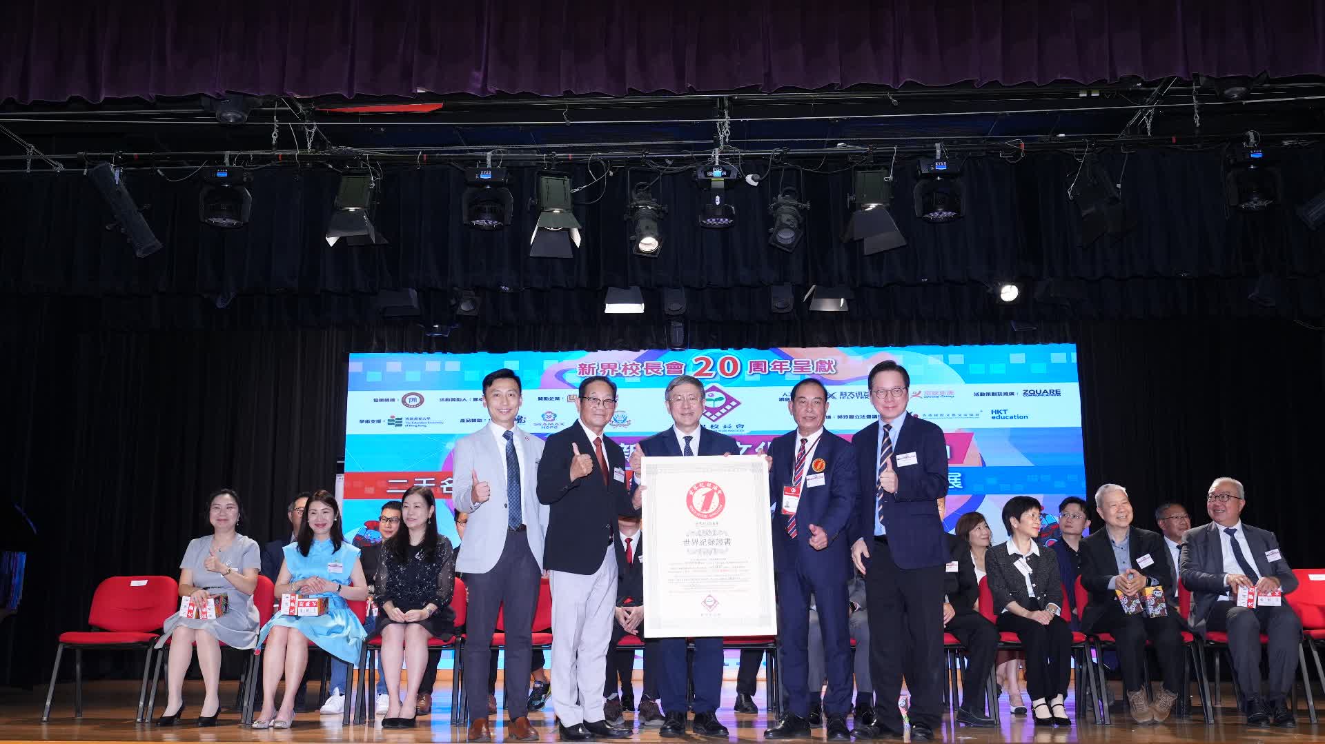 當日活動氣氛熱烈,學生們踴躍參與各項互動環節。最後由卓永興副司長代表世界紀錄協會向新界校長會頒授世界紀錄認證證書。